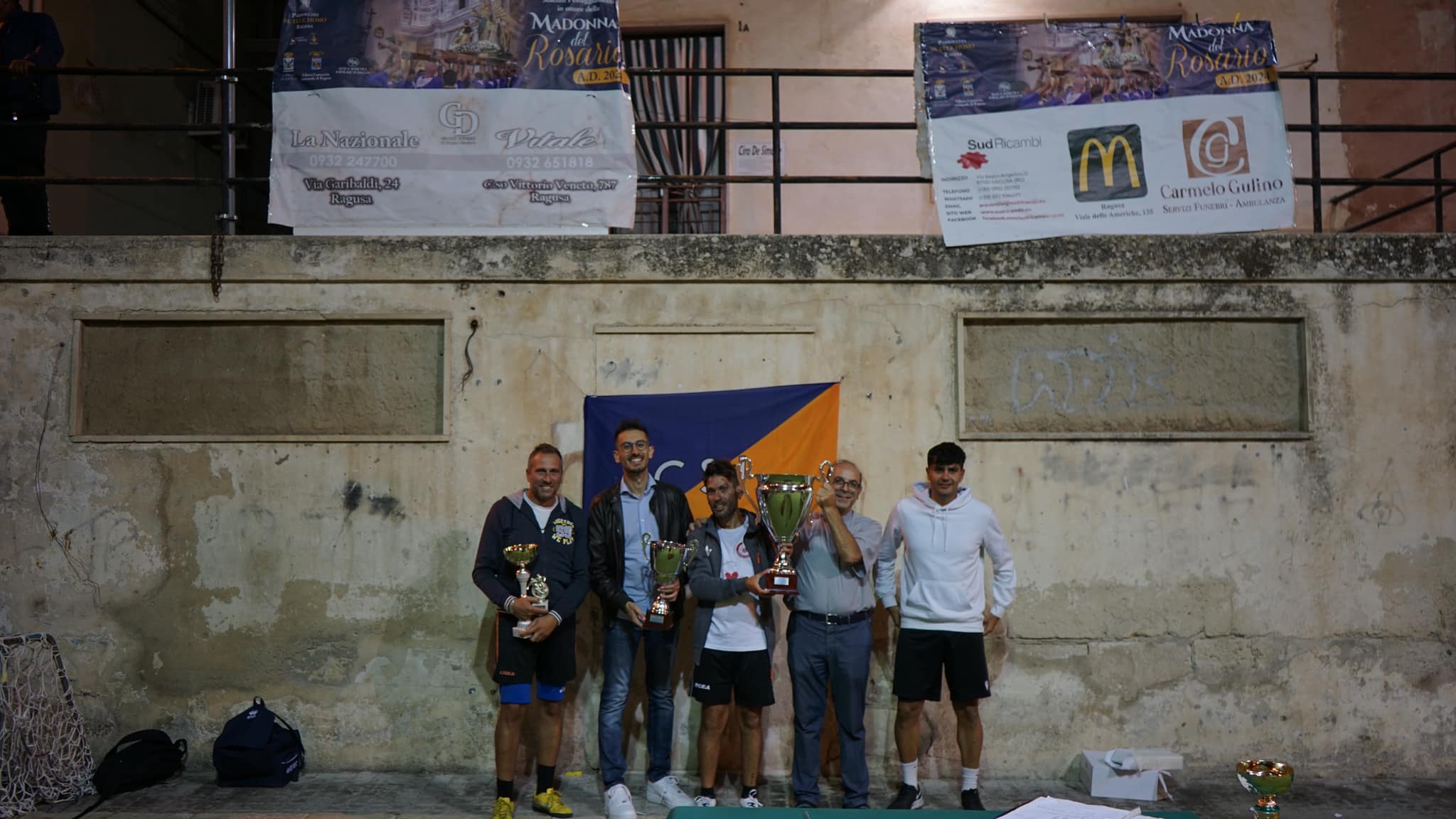 Giornata intensa, quella di domani, domenica 13 ottobre. La festa esterna della Madonna del Rosario, nel cuore del centro storico di Ragusa, si annuncia ricca di appuntamenti. E così, dopo i momenti conclusivi della manifestazione “Giocare per donare” (nella foto sotto e sopra con gli animatori), che giovedì sera hanno visto presente alla cerimonia di premiazione l’assessore comunale allo Sport Simone Digrandi e dopo la celebrazione del sacramento della Confermazione ieri sera nella chiesa dell’Ecce Homo, presieduta dal vescovo Giuseppe La Placa, domani, alle 8,30, alle 12 e alle 17, ci sarà l’annuncio alla città del giorno di festa con un solenne scampanio. Alle 8,30 ci sarà il Risveglio mariano, in pratica il comitato e i ragazzi portatori della “Varicedda”, con la partecipazione del Risveglio Kamarinense street band di Santa Croce Camerina, percorreranno le numerose viuzze del quartiere per annunciare ai residenti il giorno di festa. Ci sarà l’esecuzione di gioiosi brani musicali e festevole folklore in strada. E’ prevista anche la raccolta delle offerte per la festa, di generi alimentari e di prodotti per l’igiene che saranno devoluti alla San Vincenzo de’ Paoli parrocchiale.