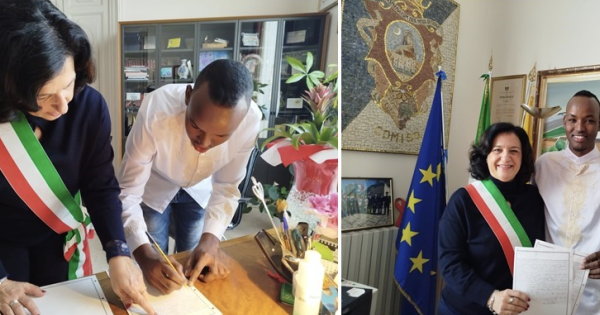 “Bashir è un giovane di origine somala – racconta il sindaco – venuto 15 anni fa in Italia, dove ha lavorato duramente e, contemporaneamente, ha studiato per potersi laureare in scienze politiche a Mogadiscio, dove a breve potrà coronare anche questo sogno. Qui ha trovato accoglienza ed è stato da subito ben voluto dalla comunità. Il suo sogno – ancora Maria Rita Schembari – era sin dall’inizio quello di poter ottenere la cittadinanza Italiana, con la speranza di trovare porte aperte nella nostra Nazione. Nato nell’89, Bashir oggi è l’emblema della piena e totale integrazione, avendo accettato e condiviso i nostri usi e le nostre leggi. E sono fermamente convinta che questo ragazzo che, affettuosamente mi definisce “la sua seconda mamma”, rappresenti davvero tutte le persone exstracomunitarie sane, oneste e lavoratrici che varcano i nostri confini, spesso per sfuggire a fame, miseria, malattie e guerre, e noi abbiamo l’obbligo morale e costituzionale di accoglierle. Dopo il giuramento, Bashir fa parte a pieno della nostra società e a lui vanno i nostri migliori auguri nella speranza che possa raggiungere i suoi obbiettivi e coronare i suoi sogni”.