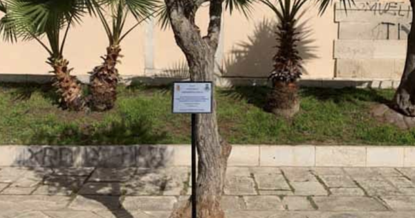 A comunicarlo, sui social, il sindaco di Vittoria Francesco Aiello che inizialmente aveva anche diffuso il video (registrato da una telecamera di sorveglianza) nel quale si vedevano due giovani rubare la targa e prendere a calci anche i pali della segnaletica stradale che incontravano sul loro cammino. La targa (nella foto) era attaccata ad un ceppo che, insieme ad un albero di ulivo, rendevano omaggio a Giovanni Palatucci, Giusto tra le nazioni.
