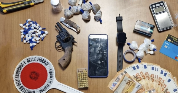 All’interno del garage sono stati rinvenuti e sequestrati 100 grammi di hashish, 50 grammi di cocaina, già confezionati e pronti per lo spaccio, nonché una pistola revolver modificata, perfettamente funzionante, oltre a 50 cartucce calibro 22.