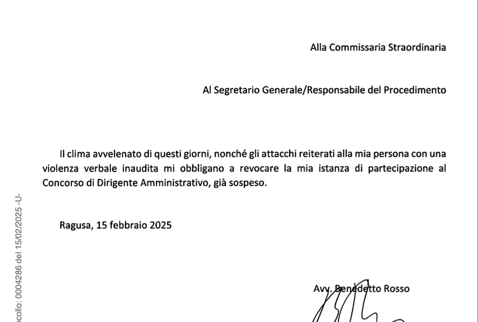 Concorso al Libero consorzio di Ragusa, l'avv. Rosso rinuncia alla partecipazione