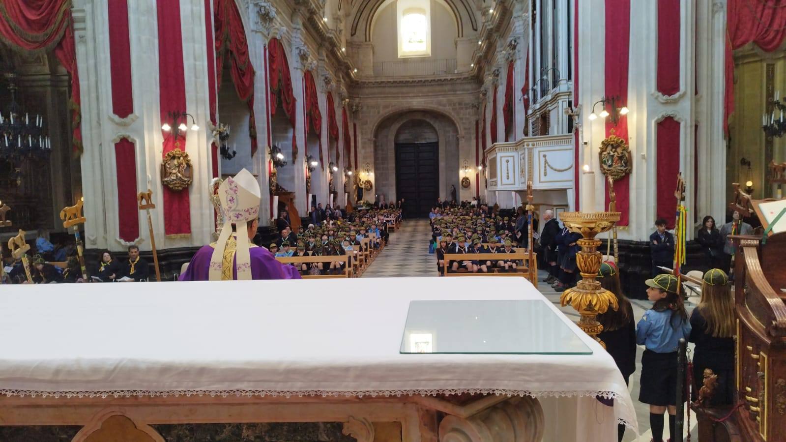 La messa del vescovo La Placa al duomo di San Giorgio con la presenza di lupetti e coccinelle