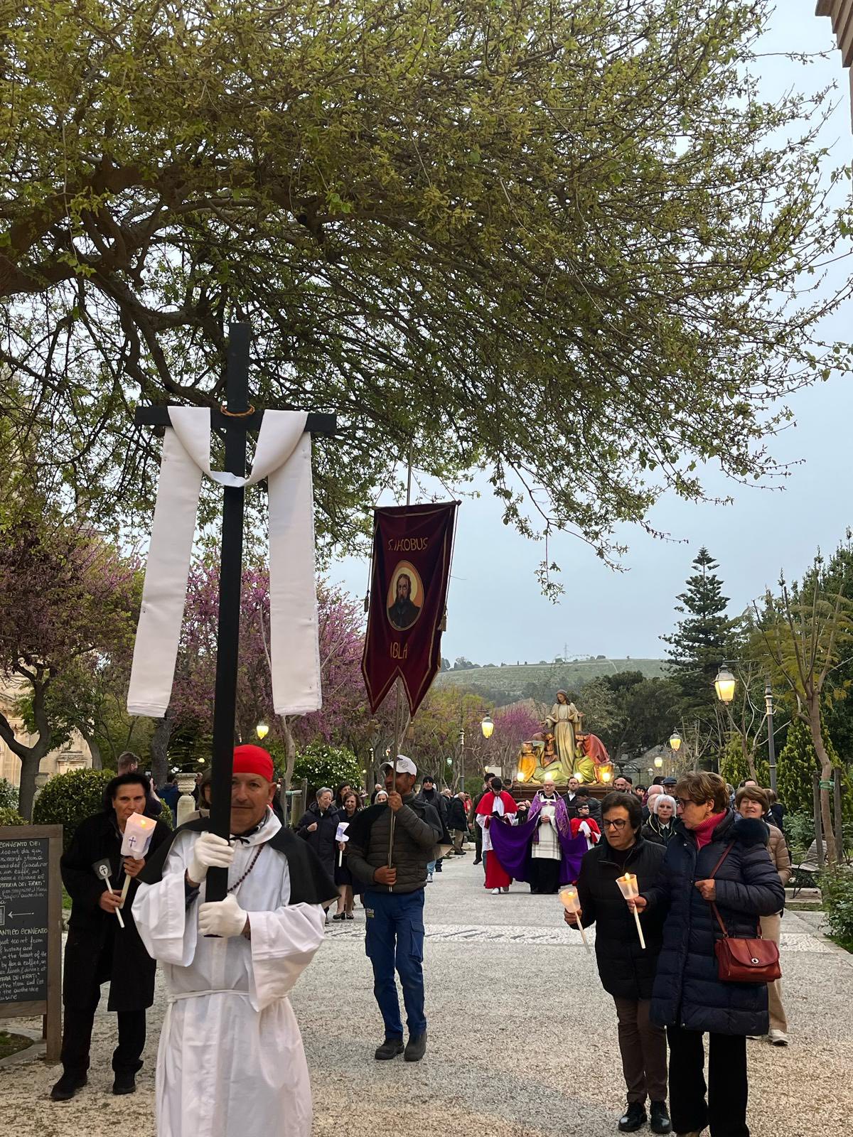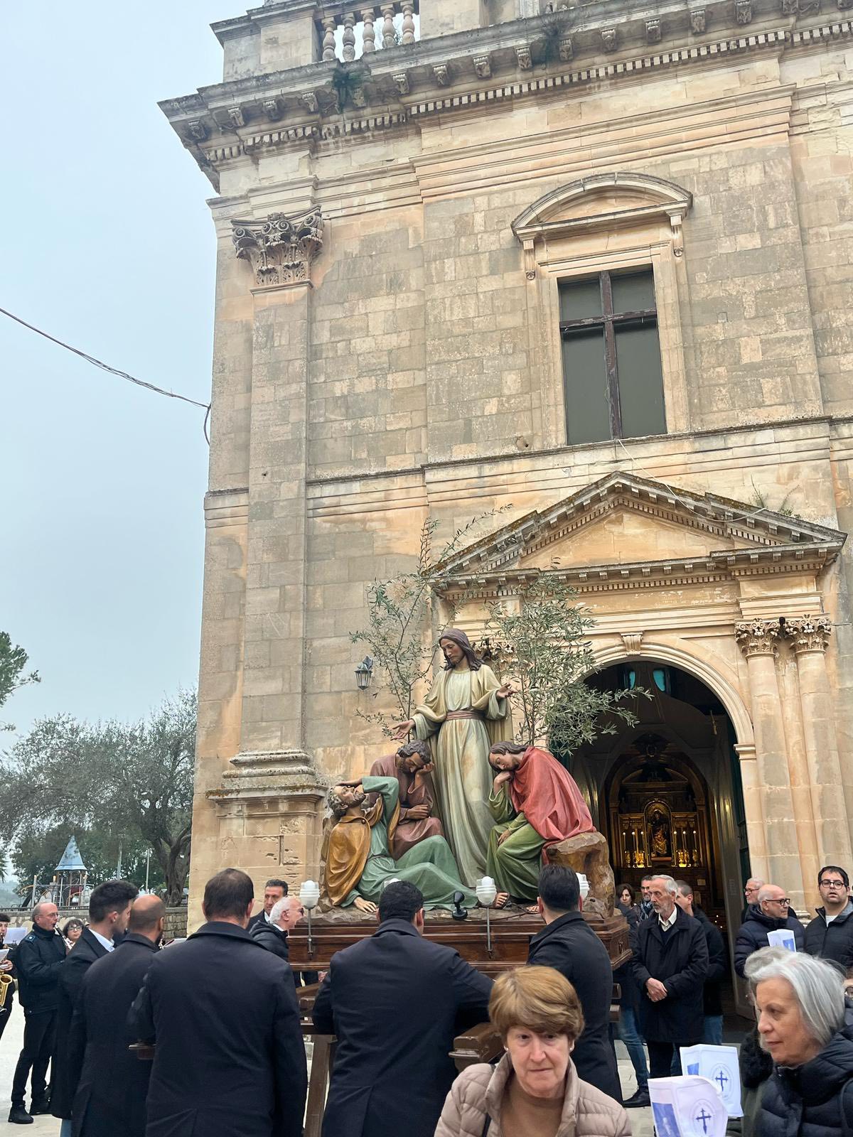 Altre due, ieri, le processioni animate dalle confraternite, con al seguito la banda musicale San Giorgio Città di Ragusa, dopo quelle che, a partire dalla processione con il simulacro dell’Addolorata, avevano caratterizzato l’avvio di queste fasi di intensa spiritualità nel pomeriggio di domenica scorsa. In particolare, in occasione del Lunedì santo, dalla chiesa di San Giacomo Apostolo, all’interno del Giardino ibleo, l’arciconfraternita omonima, che risale al 1563, dopo la celebrazione della messa, ha dato vita alla processione del gruppo statuario di “Gesù nell’orto degli ulivi” che da piazza Odierna, transitando per corso XXV aprile, ha raggiunto piazza Duomo e da qui la chiesa Madre dove è stato tenuto il fervorino eucaristico.