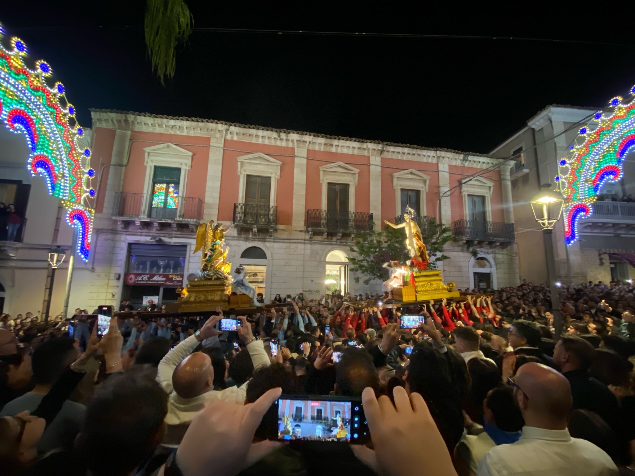 E già da subito, dopo essere stata posizionata l’una di fronte all’altra, dopo l’antifona intonata dagli angioletti, quest’anno Enrico Distefano e Biagio Arena, posti ai piedi della Madonna e di Gesù, hanno dato vita, venendosi incontro, alla “paci” iniziale della lunga giornata. La prima di una lunga serie, dunque, che ha scadenzato l’interminabile processione, con le bande musicali, che ha toccato buona parte del centro abitato casmeneo. L’ultima “paci”, anzi le ultime due, quelle denominate dei gonfaloni e delle confraternite, prima del rientro in basilica, in piazza Fonte Diana. Dopo il rientro, a notte fonda, l’ultima “paci”, la tredicesima (particolarmente emozionanti quelle tenutesi a San Leonardo, a San Giuseppe e a Sant’Antonio) della lunga ed estenuante giornata che però ha regalato una grossa soddisfazione ai devoti e ai fedeli e a tutti coloro che si sono spesi per questi fantastici momenti. Il tutto favorito da un sole primaverile che ha reso la processione ancora più partecipata. A scadenzare i tempi del corteo anche l’attività svolta dall’impresa Gali group trasporti e logistica di Ispica che ha voluto puntare l’accento sul forte aspetto identitario delle celebrazioni religiose comisane. Che, ieri, però, così come accaduto nel mondo della Cristianità, sono state contrassegnate dal lutto che ha colpito la Chiesa in seguito alla morte di Papa Francesco. E proprio ieri, infatti, alle 19, si è tenuta una messa in suffragio del pontefice mentre, in segno di lutto, è stato annullato lo spettacolo pirotecnico serale.  Oggi, intanto, si prosegue con gli altri appuntamenti in programma.
