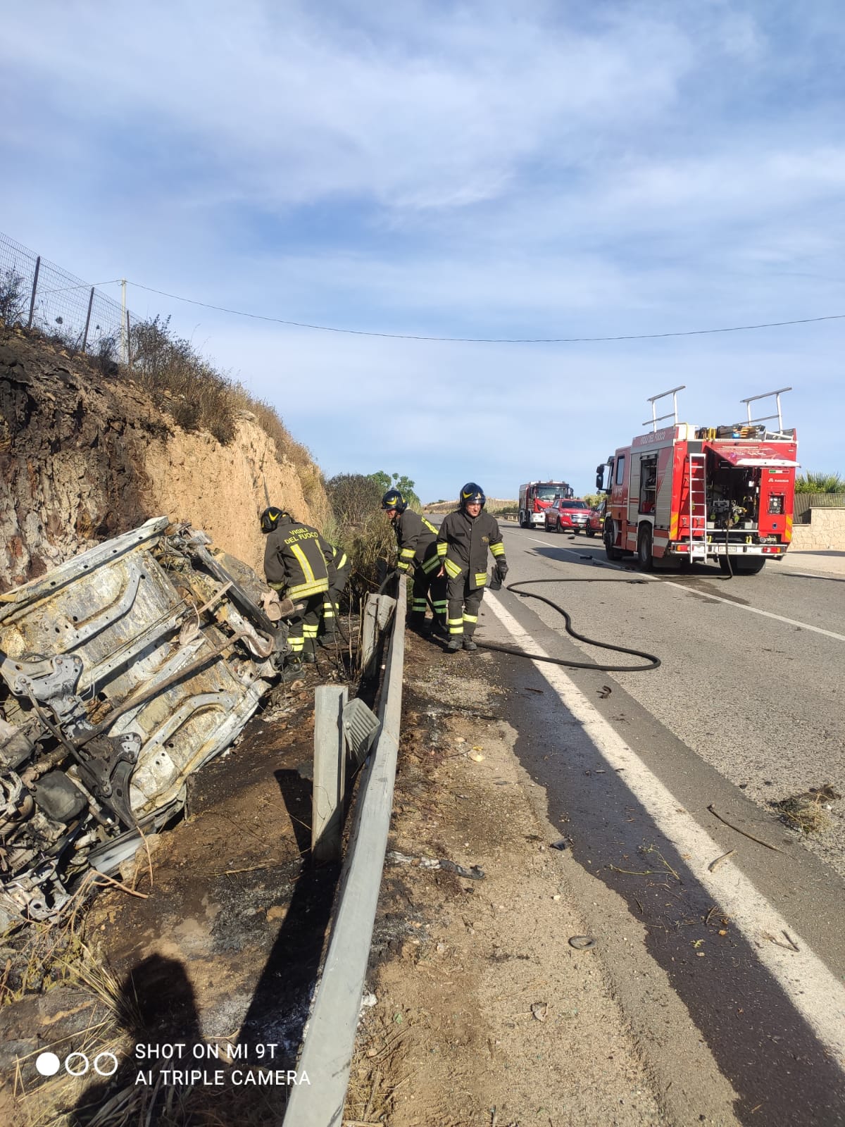Incidente mortale alle porte di Marina di Ragusa, in prossimità di Playa Grande, lungo la circonvallazione che conduce a Donnalucata. Uomo sbanda e muore carbonizzato dentro la propria auto dopo, a quanto pare, lo scontro con un'altra auto. E' accaduto intorno alle 16,30. A nulla è valso l'intervento di tre ambulanze. Sul posto i vigili del fuoco e la polizia municipale di Scicli. Le fiamme si sono autoestinte (foto sopra Franco Assenza). Il cadavere carbonizzato è presumibilmente di una donna, l'auto sembrerebbe essere una Peugeot. Al momento non è nota l'identità della vittima.
