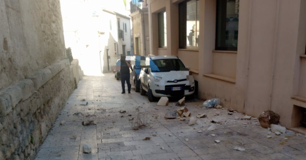 Scicli, crollano alcuni massi dal cornicione del palazzo comunale: tragedia sfiorata