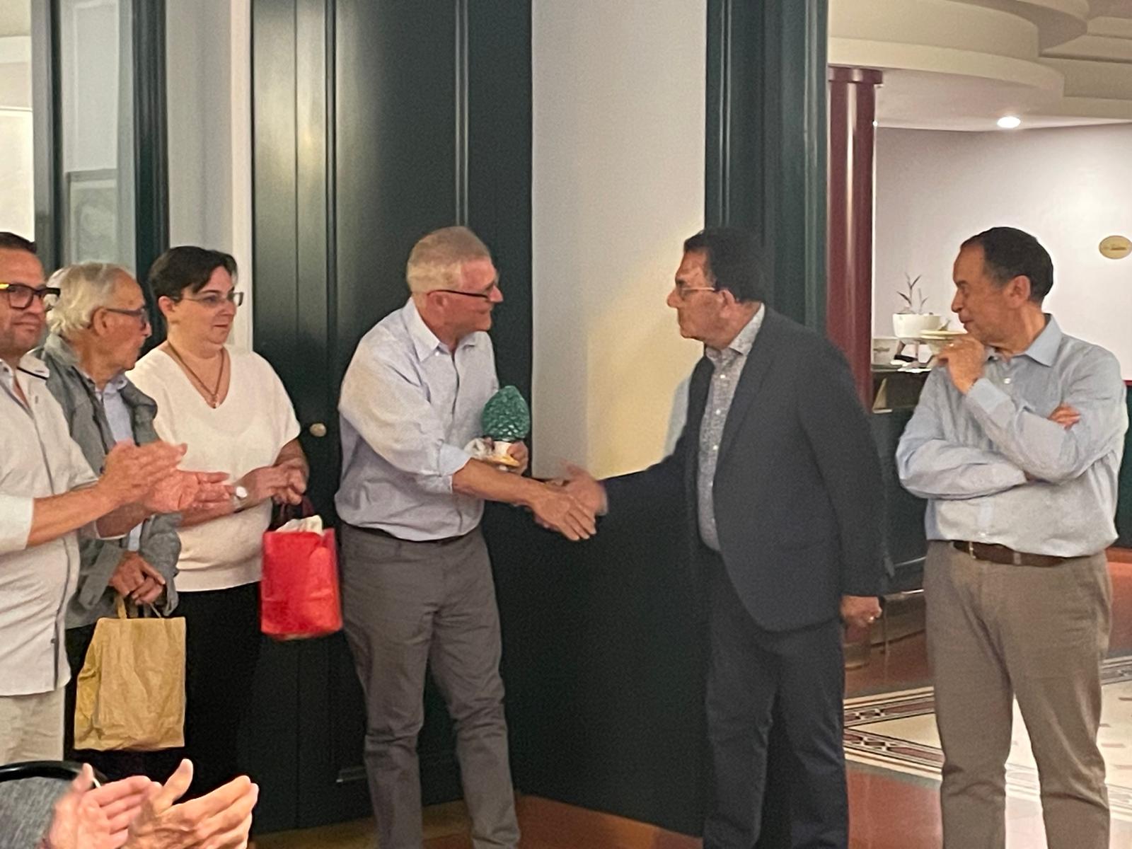 Moto storiche nel barocco ibleo ha colpito, ancora una volta, nel segno. Non solo il gradimento dei centauri che hanno partecipato alla 19esima edizione, ma è stato anche tagliato un altro importante traguardo, quello di cementare i rapporti con la delegazione dei motociclisti maltesi che diventa sempre più consistente con il trascorrere degli anni. In particolare, il presidente del club di Malta, Martin Hignett, è stato omaggiato di un premio simbolo della sicilianità. Uno scambio di doni che ha contribuito a rendere più solenni i momenti istituzionali della kermesse. Inoltre, il Veteran car club ibleo, che ha promosso la kermesse della durata di tre giorni, ha consegnato un contribuito finanziario all’associazione Airc attraverso la presenza del consigliere nazionale Luisa Gentile. In più, un riconoscimento per la passione è stato consegnato al centauro Peter Sprot.