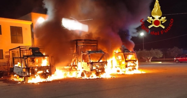 La squadra dei vigili del fuoco di Vittoria è intervenuta nella serata di ieri intorno alle 22,40 per l'incendio di 3 camion presso il parcheggio esterno di un'azienda per la lavorazione di prodotti ortofrutticoli in contrada Alcerito a Vittoria. Scongiurato il coinvolgimento del capannone visto che, fortunatamente, la squadra di Vittoria era in rientro da un altro intervento e si trovava nelle vicinanze. Sul posto i carabinieri per le attività di loro competenza. Sembra che non ci siano dubbi sulla dolosità del gesto.