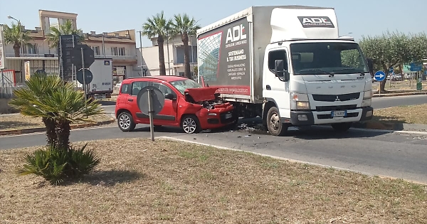Incidente stradale questa mattina in prossimità della rotatoria stradale della fontana della Pace, all'ingresso della città. Si è verificato lo scontro tra una Fiat Panda e un tir. Un ferito è stato trasportato all'ospedale Guzzardi di Vittoria. Sul posto, per i rilievi, la polizia municipale (foto Franco Assenza).