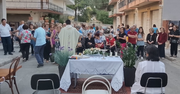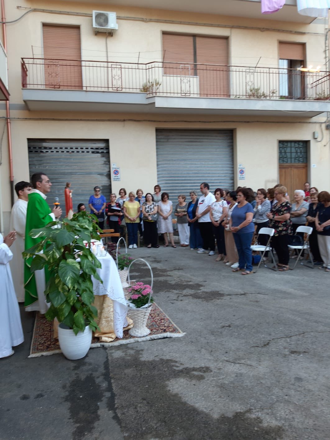 Alle 8,30 la santa messa, alle 18,15 la preghiera del Rosario e la novena al Sacro Cuore di Gesù animata dal gruppo Caritas. Alle 19 la celebrazione eucaristica presieduta dal sacerdote Vincenzo Guastella. L’omelia sarà tenuta da don Alessio Leggio e animata dai gruppi degli educatori Acr e giovani adulti. Alle 20 l’iniziativa “Star(e) in scena”, spettacolo organizzato dai ragazzi di età compresa tra i 12 e i 14 anni Acr. Mercoledì 25 si prosegue con la celebrazione eucaristica delle 8,30, alle 18,15 ci sarà la preghiera del Rosario e la novena al Sacro Cuore di Gesù animato dal gruppo Cursillos, Alle 19 la celebrazione eucaristica presieduta da don Luca Roccaro e animata dal gruppo Adulti dell’Azione cattolica. Intanto si stanno tenendo una serie di sante messe sul territorio in preparazione alla festa del Sacro Cuore. Le ultime quelle che sono state ospitate in via XVIII settembre e via del Faggio che hanno fatto registrare la presenza di un consistente numero di fedeli (nella foto).