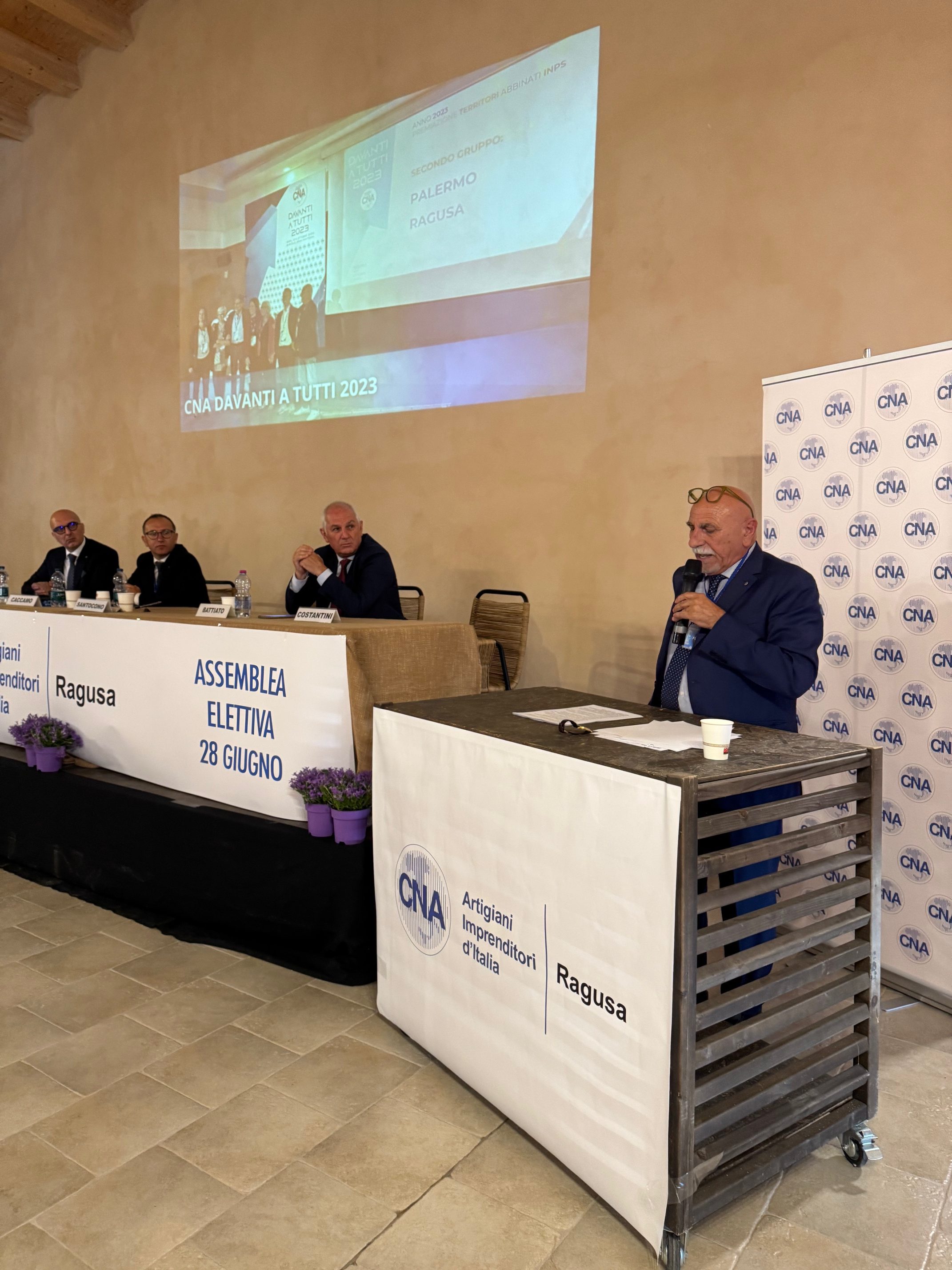 Nel suo intervento, il presidente regionale Nello Battiato, accompagnato dal segretario regionale Piero Giglione (c’era anche il vicepresidente nazionale Giuseppe Cascone), mettendo in rilievo la grande azione di stimolo per il territorio da parte della Cna territoriale Ragusa che può contare su oltre 3500 imprese associate e sull’iscrizione di 2500 pensionati, facendola dunque diventare una grande forza sociale dell’area iblea, ha parlato dei nodi che ancora oggi impediscono alla Sicilia di spiccare il volo dal punto di vista economico. E tutto questo nonostante gli impegni che la Cna ha cercato di portare avanti, raggiungendo traguardi anche considerevoli che, però, al momento ancora non bastano perché si possa cantare vittoria. D’impatto, poi, la relazione del presidente uscente Cna territoriale Ragusa, Giuseppe Santocono, che ha fatto un excursus dei dieci anni e mezzo vissuti alla guida dell’associazione di categoria. “Abbiamo la necessità – ha spiegato Santocono (nella foto sotto) – di una cabina di regia. Lo abbiamo chiesto più volte. Lo diciamo pure in questa occasione. Dalle infrastrutture alle agevolazioni per le imprese, il panorama è frastagliato. C’è la necessità di parlare tutti la stessa lingua. Siamo un territorio piccolo, dal punto di vista della superficie, ma grande per la capacità che abbiamo di investire sulle prerogative presenti in più fronti e di fare risaltare le nostre eccellenze, quali esse siano. Oggi si parla di dazi, di complicazioni normative, invece di semplificazione. Ecco, rischiamo un ritorno al passato quando, invece, occorrerebbe guardare avanti e provare a trovare le giuste soluzioni per la crescita. La nostra ragusanità non può essere svenduta e abbiamo bisogno di tutti affinché questo non succeda più. Le priorità del territorio le conosciamo tutti. Dobbiamo, adesso, metterci a operare con una lena nuova e differente dal solito, creando le sinergie che ci potranno favorire nelle fasi di crescita”.