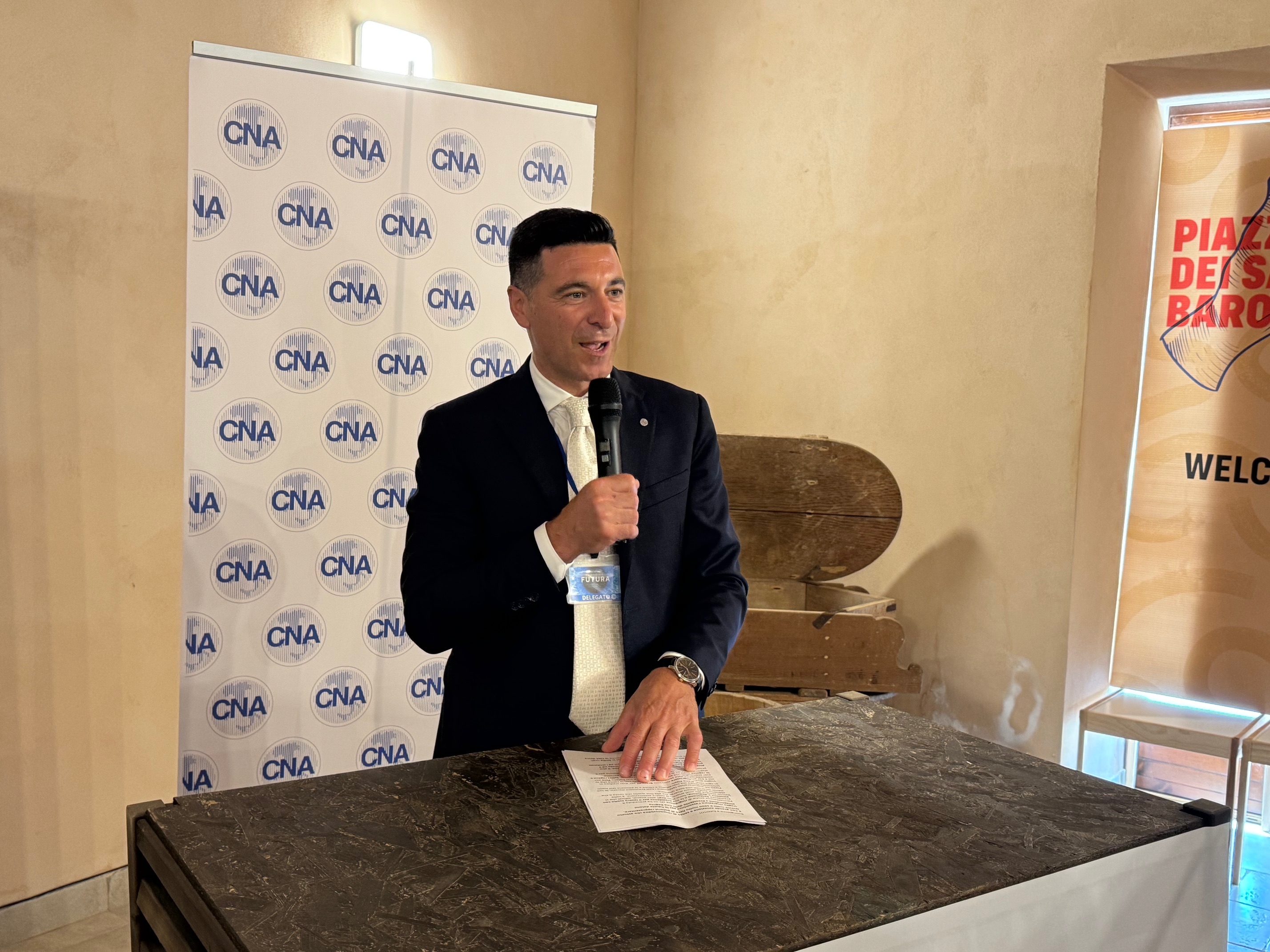 “L’89% delle imprese italiane che esportano all’estero sono micro, piccole e medie imprese. Quasi 9 imprese su 10, quindi, vendono il Made in Italy nel mondo. Imprese che, in questa fase storica, stanno affrontando, oltre a quelle consuete, difficoltà enormi, perché bisogna fare i conti con una situazione geopolitica tormentata dalle guerre. Infatti, era dal 1945, dalla conclusione della Seconda guerra mondiale, che non contavamo un numero tale di Paesi in guerra. La nostra direzione nazionale, all’indomani dell’invasione dell’Ucraina, assunse una decisione forte come prima delibera del mio mandato: ripudiare la guerra e lo diciamo anche oggi con ancora maggiore forza. Perché la guerra, oltre a portare lutti, determina incertezza, disorientamento e incapacità di programmazione per i nostri associati. E tutto questo pregiudica la crescita” (nella foto sopra da sinistra Caccamo, Roccuzzo e Santocono).