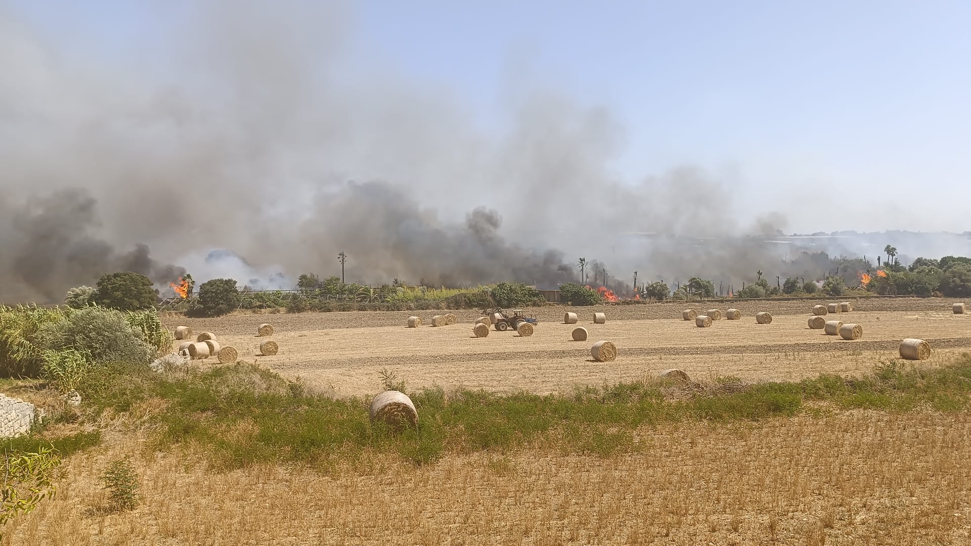 Dal primo pomeriggio di oggi, anche a causa del vento, un vasto incendio si sta sviluppando lungo la Modica Sorda-Pozzallo.