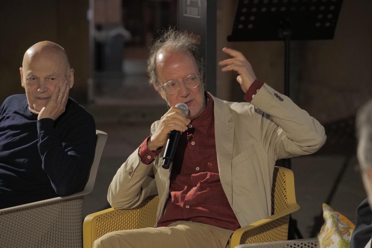 Con i loro burattini e marionette, i Fratelli Napoli hanno trasformato la facciata del castello in un teatro di magia e cultura popolare, dove la tradizione si fonde con l’innovazione scenica. Con il segno dei Gemelli che guida questa edizione, il festival esplora il concetto di doppio e identità moltiplicate, ma anche di continuità tra generazioni e linguaggi diversi. Il primo focus della rassegna cinematografica diretta da Andrea Traina ha visto l’atteso intervento di Mario Cordova, leggendario doppiatore italiano, che ha svelato l'arte di “abitare letteralmente il corpo” di star del cinema come Richard Gere, Jeremy Irons, Bruce Willis, Willem Dafoe - restituendone il respiro, la vibrazione dell'anima, l'eco più profonda. Un mestiere che per lui è un vero e proprio viaggio nell’anima degli attori, un corpo a corpo con l’immagine che si traduce in voce. Accompagnato dalle dolci note dell’arpa celtica suonata da Lucia Basile, Cordova ha inoltre presentato il suo libro “Gli uccelli non hanno vertigini”, leggendo alcuni brani con la sua straordinaria capacità interpretativa. Un momento particolarmente speciale è stato l’intervento della giovane Luna Massari, doppiatrice di soli 11 anni, che ha emozionato il pubblico con la sua maturità e la sua determinazione.