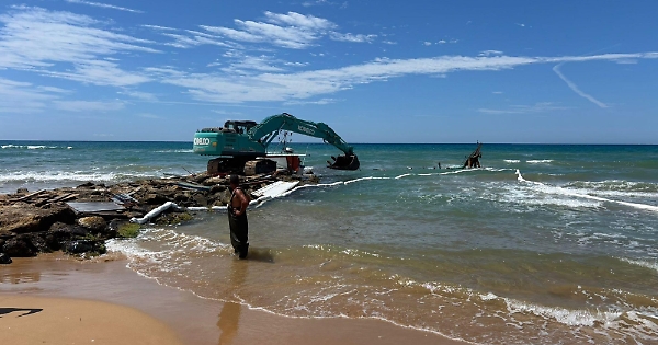 La ditta incaricata della rimozione sta procedendo a tappe: stamani sono stati rimossi l’argano, la poppa e la prua. Bisognerà attendere giovedì per la rimozione del motore e del serbatoio carburante.