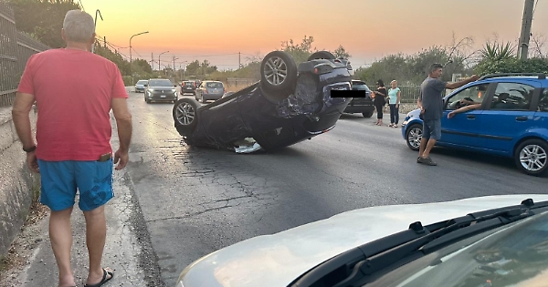 Incidente autonomo con lievi feriti questa sera in via Colombia, contrada Boscorotondo, dopo Fontana della Volpe. Un'auto Nissan, per cause in via di accertamento, si è ribaltata. Non si registrano ferite serie (foto Assenza). Il traffico veicolare ha subito una serie di rallentamenti. Sul posto le forze dell'ordine per i rilievi.