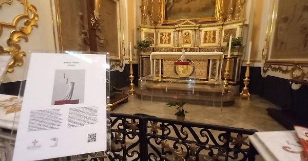 Proseguono i solenni festeggiamenti in onore di San Giovanni Battista, patrono di Ragusa. Ieri, nella cappella di San Giovannino, è stata collocata l’installazione “Semen” (nella foto Bracchitta). E’ stata realizzata dall’artista Alessia Forconi ed è sostenuta e curata dal prof. Andrea Guastella. La scultura rappresenta un braccio che affonda in un parallelepipedo di resina rossa; le dita, rivolte in direzione opposta rispetto alle dita del reliquario che sfiorano il cielo, diventano radici: l’incarnazione perfetta del detto di Tertulliano, per cui “sanguis cristianorum est semen”, è seme il sangue del cristiano.