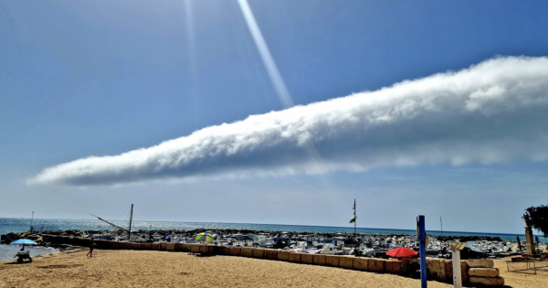 Nel primo pomeriggio di martedì 2 settembre, intorno alle 15, il cielo del litorale ragusano ha regalato uno spettacolo raro: una formazione nuvolosa orizzontale a forma di tubo, nota come roll cloud o nube a rullo. La sua particolare conformazione dà l’impressione che la nube stia “rotolando” su se stessa.