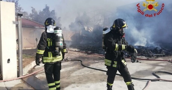 RAGUSA - Squadre operative dei vigili del fuoco di Ragusa sono intervenute nel piazzale della ditta Carnazza Autotrasporti, dove era in fiamme una catasta di pedane in legno. Il calore ha interessato la copertura di un locale coperto con telo di polietilene, posto a protezione dagli agenti atmosferici di casse d'acqua. Per il rifornimento idrico è stato disposto l'impiego di tre autobotti due della sede centrale ed un della sede aeroportuale di Comiso, mentre sul posto sono state piazzate due Aps per l'erogazione dell'acqua di spegnimento. Per circoscrivere rapidamente l'incendio sono intervenuti 15 unità ed in totale 7 automezzi antincendio. Sul posto anche personale della polizia di Stato e dei vigili urbani che ha provveduto a regolamentare il traffico. Vigili del fuoco è ancora sul posto per la verifica e la bonifica finale.