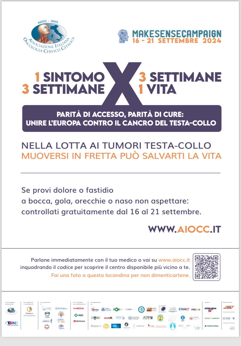 Il 16, 17 e 19 settembre prossimi nel Policlinico "Rodolico" e nell’ospedale San Marco di Catania verranno offerti screening gratuiti mirati alla prevenzione dei tumori testa-collo. L’Azienda Ospedaliero Universitaria Policlinico 'G. Rodolico - San Marcò di Catania infatti ha aderito alla nuova edizione della 'Make Sense Campaign', iniziativa di sensibilizzazione con visite gratuite contro l'insorgenza dei tumori testa-collo promossa dall’Associazione Italiana di Oncologia Cervico-Cefalica con lo slogan "1 sintomo per 3 settimane, 3 settimane per 1 vita".
