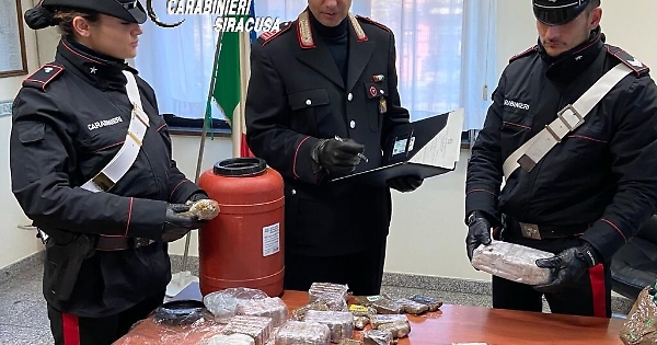 Una massiccia operazione dei carabinieri in una zona rurale tra Siracusa e Floridia ha portato a 5 arresti e al sequestro di droga, armi e esplosivo. Con i carabinieri del comando provinciale di Siracusa, il Nucleo cinofili di Nicolosi (Ct), lo Squadrone eliportato dei Cacciatori di Sicilia e gli artificieri del Comando provinciale di Catania. Durante le perquisizioni sono state arrestate 5 persone. Un pregiudicato siracusano di 51 anni e il figlio minorenne di 17 anni per detenzione di stupefacenti, poiché in possesso di circa 5 chili e mezzo di hashish e marijuana, 1.800 euro in contanti e 2 pistole calibro 7,65 e calibro 22.