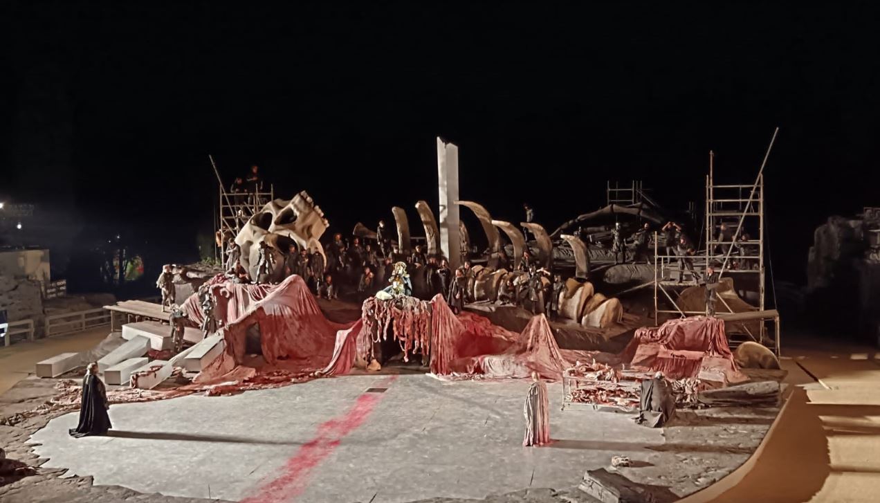 La cavea (quasi 5000) è invasa a ripetizione dalla Compagnia, entrate ed uscite a ripetizione, tante e tanto simili da annullarne sorpresa ed incantamento ma sembra gradire non poco con chiamate e feste, alla fine.