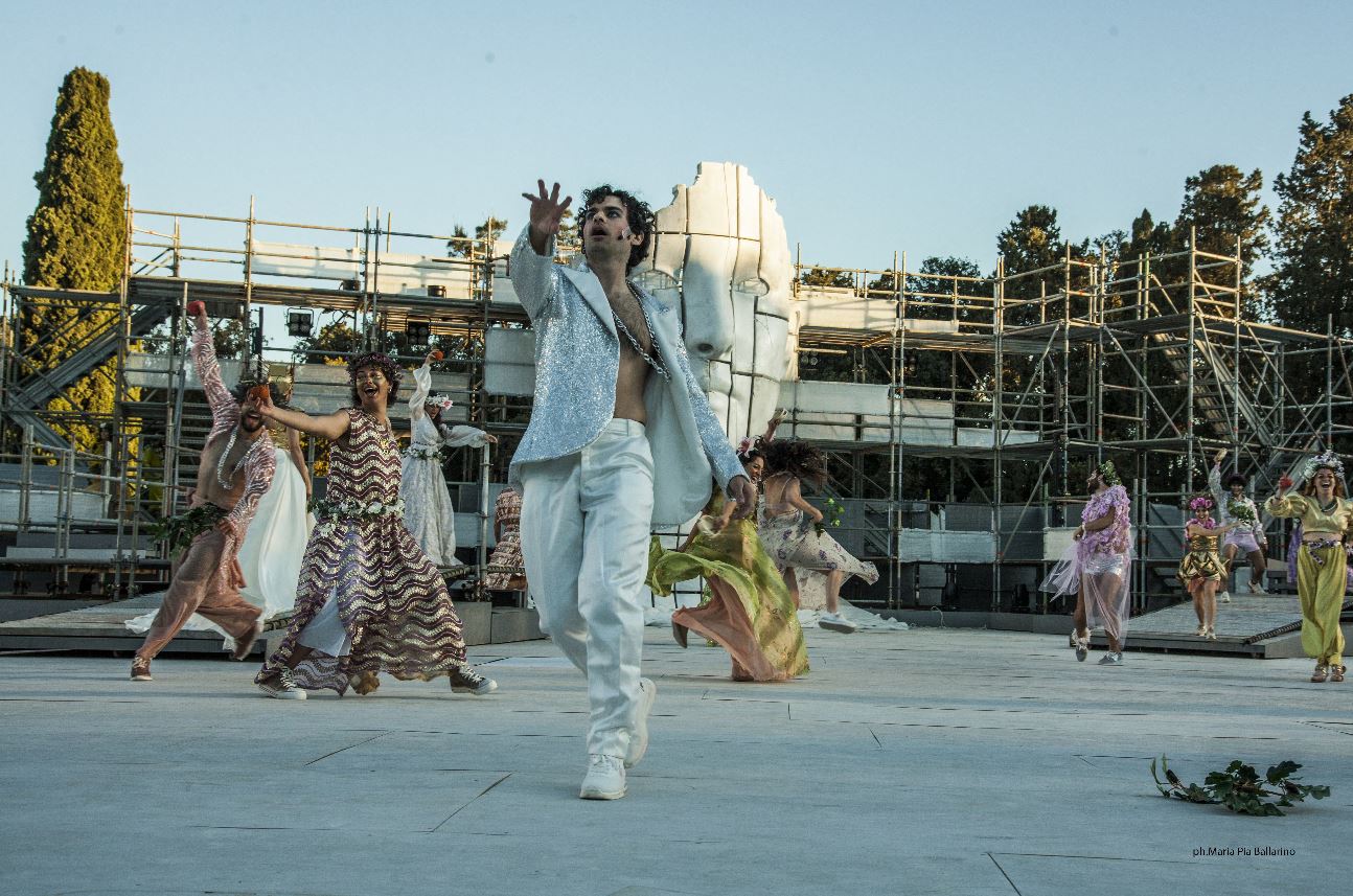 Perciò libera cittadinanza al telefonino cellulare con cui un membro del Coro apostrofa il servo - che indossa una sorta di veste da postulante - chiamandolo “vecchio” benché questi, a un certo punto, prenda a dimenarsi in una specie di “shake”. E sia anche l’opinabilissima pistola che Teseo punta ex abrupto sulla fronte del Messaggero. Per non dire, poi, dell’ombra di una improvvisa, imprevista, improbabile Protezione civile che fa capolino nel plotone di coreuti in tute gialle e arancioni.