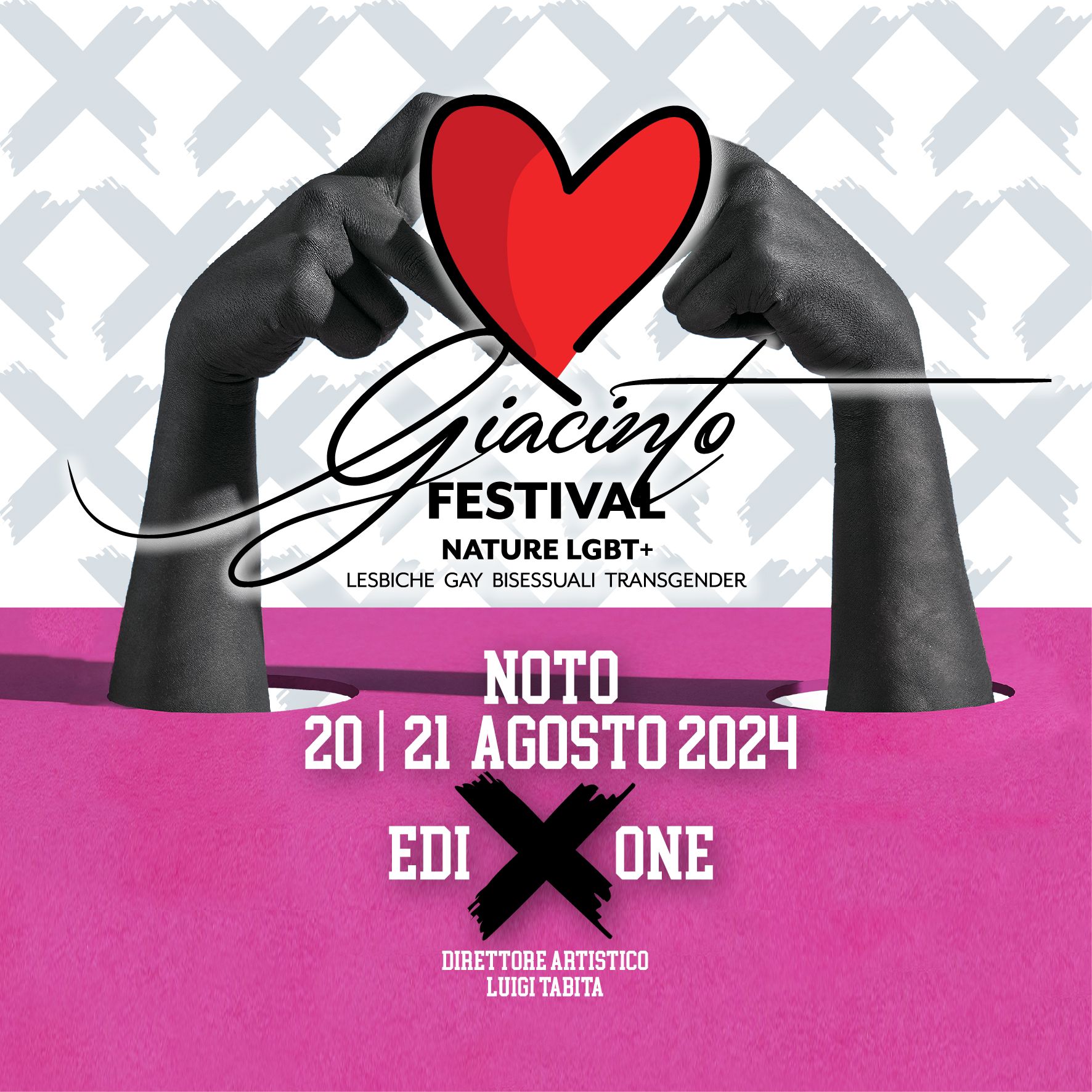 Dieci anni di informazione e approfondimento. Dieci anni di storie e battaglie. Dieci anni di impegno per affermare i diritti di tuttə. Non poteva, quindi, che essere lotta e testimonianza il fil rouge lungo il quale si snoderà la X edizione di Giacinto festival - nature lgbt+ in programma martedì 20 e mercoledì 21 agosto a Noto, città dei diritti, in provincia di Siracusa. Il festival di informazione e approfondimento culturale, con la direzione artistica dell’attore e operatore culturale Luigi Tabita - e sotto l’Alto patrocinio del Parlamento europeo, del Senato della Repubblica Italiana, dell’Assessorato alla Cultura-Comune di Noto e dell’Unar (Ufficio nazionale antidiscriminazioni razziali della Presidenza del Consiglio) - prevede due giorni di lavori durante i quali, attraverso l’utilizzo di linguaggi differenti, verranno raccontati i temi e le realtà che più interessano la comunità LGBT+ (Lesbiche, Gay, Bisessuali, Transessuali). Un momento importante e inclusivo che, sin dalla prima edizione del 2015, ha registrato una grande partecipazione di pubblico, chiamato a questa riflessione collettiva sulle differenze come valore. Tanti sono stati in questi anni i temi affrontati, anche grazie alla partecipazione di ospiti provenienti da vari ambiti culturali, politici e sociali. Temi che hanno contribuito a riflessioni importanti di ordine sociale, come: terza età Lgbt+, disabilità Lgbt+, migranti Lgbt+, turismo Lgbt+. Tutte tematiche che continuano a essere oggetto di riflessione e che convergono nella grande tematica della decima edizione: lotta e testimonianza.