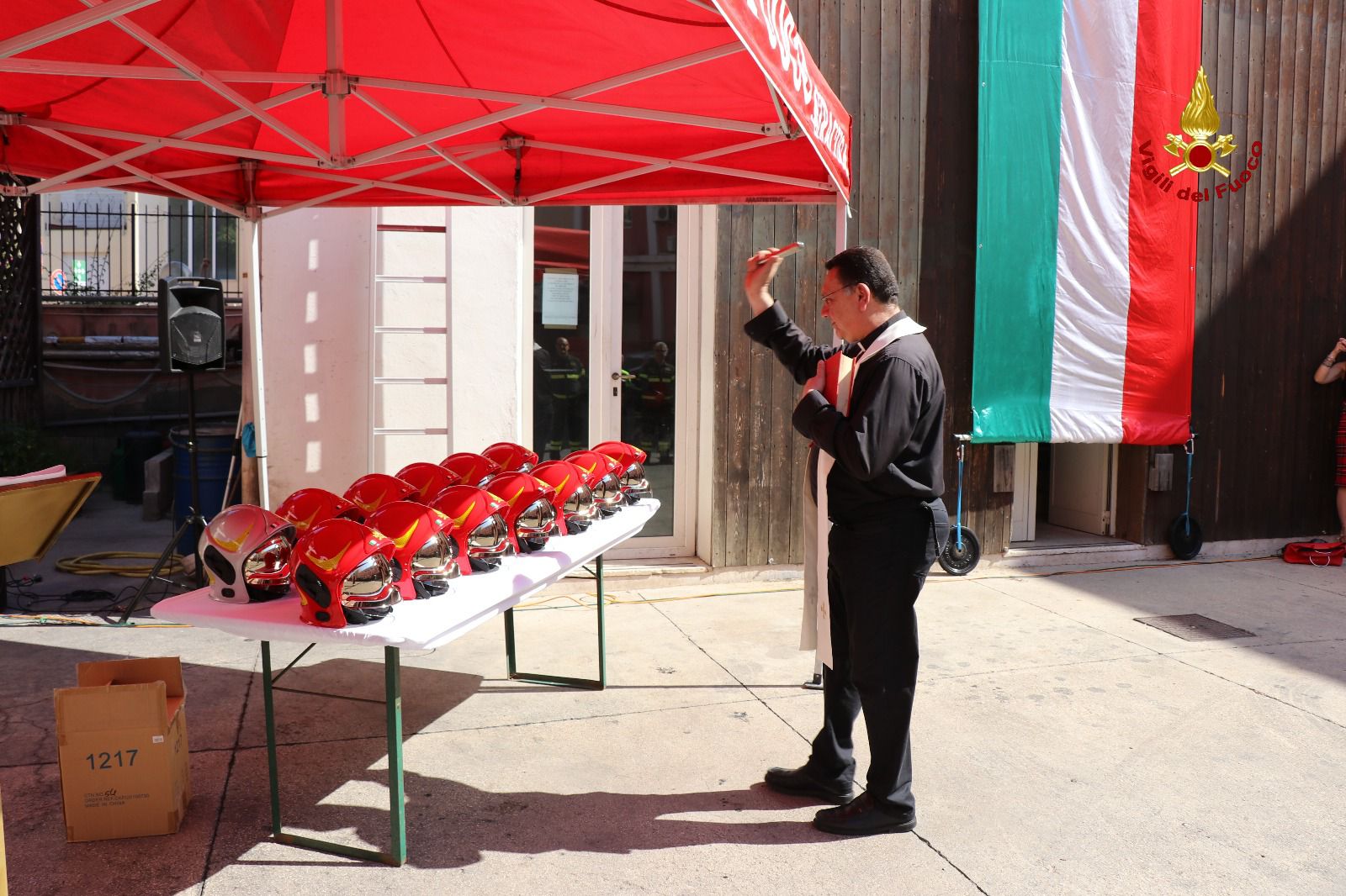 La cerimonia è stata arricchita dalla benedizione dei caschi impartita da padre Massimo Di Natale