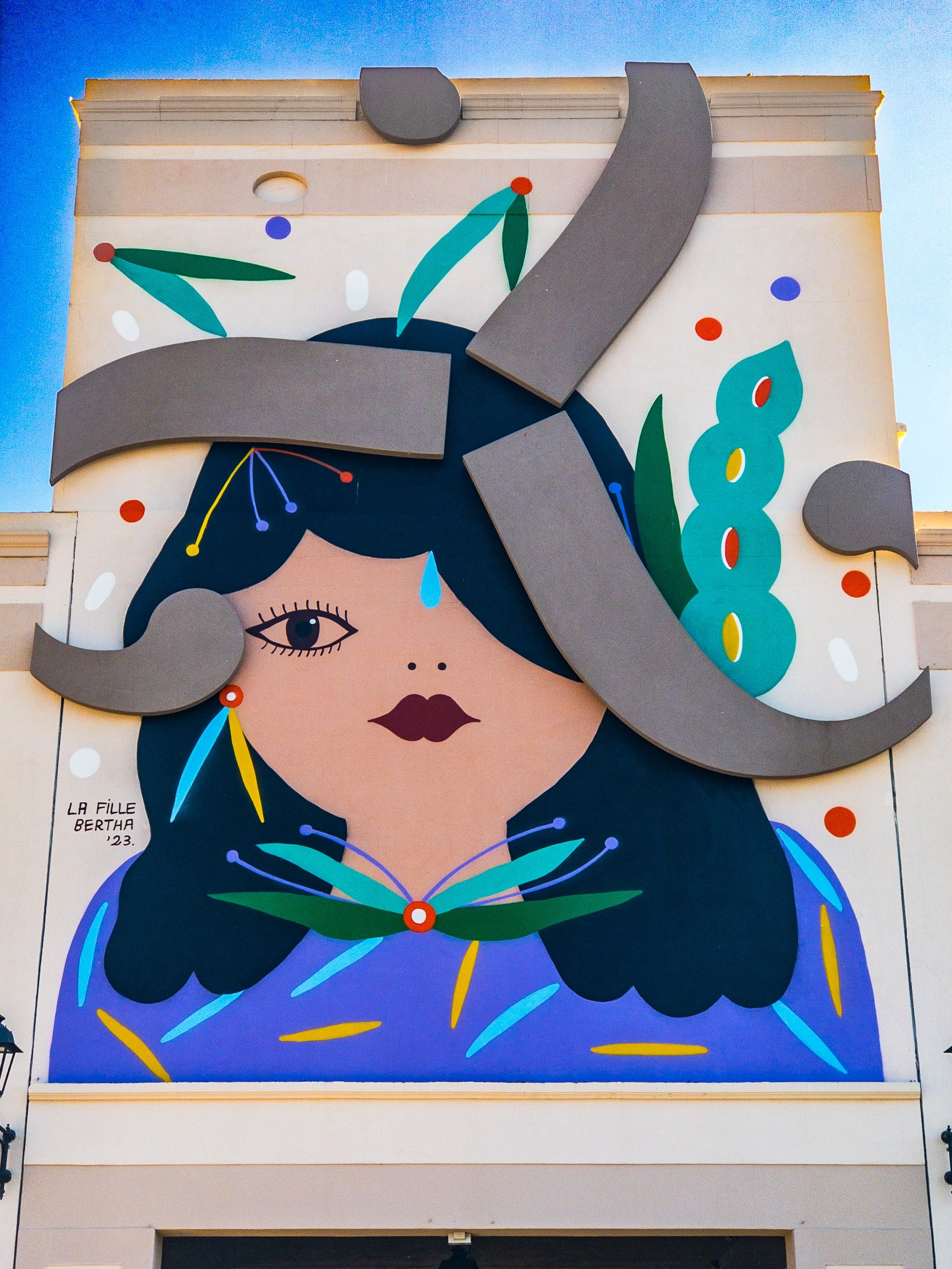 L’opera di pittura monumentale di La Fille Bertha, realizzata in una delle maestose Porte di Accoglienza del Village, promuoverà un viaggio immaginario in compagnia di creature dalle sembianze femminili e animalesche, fluttuanti in una dimensione atemporale; una sorta di realtà rarefatta dove l'atmosfera suggerisce luoghi silenziosi, magici e surreali.