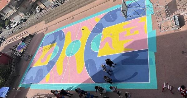 In evidenza, foto del campo da basket artistico realizzato a Linguaglossa con i fondi della democrazia partecipata 2022. Eppure il Comune risulta sanzionato. La foto è tratta dalla pagina Facebook dell'associazione Ascuta di Linguaglossa.