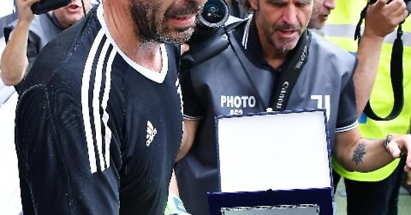 TORINO, 19 MAG - C'era il diluvio sull'Allianz Stadium quando è cominciata la premiazione della Lega calcio per lo scudetto vinto dalla Juventus. Riparato sotto un ombrello, il presidente Gaetano Miccichè ha cominciato la consegna delle medaglie con il numero 2 della Juve, De Sciglio. Per il numero 1, Gigi Buffon, è stato riservato, ovviamente, il posto finale per l'ultima ovazione nella giornata dell'addio (quantomeno da giocatore) alla Juventus. (ANSA)