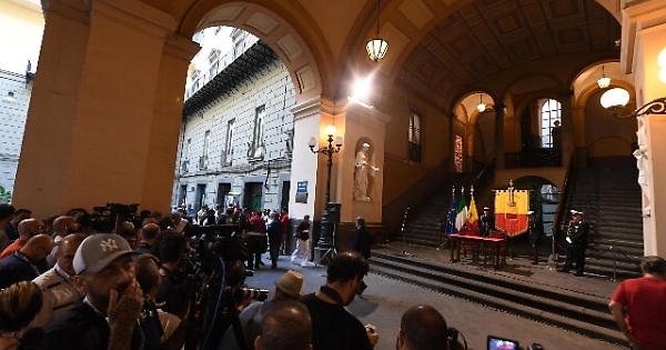 NAPOLI, 5 LUG - Diego Armando Maradona è appena giunto nel municipio di Napoli per ricevere la cittadinanza onoraria. L'appuntamento era previsto per le 20, come reso noto nel pomeriggio dal Comune, e da quell'ora è iniziata l'attesa di circa 150 persone tra assessori, consiglieri comunali, giornalisti accreditati e dipendenti-tifosi del Comune. A quanto pare l'ex pibe de oro avrebbe voluto ricevere la cittadinanza in piazza del Plebiscito e non in Comune: da qui una trattativa svoltasi dietro le quinte e conclusa ora, quando manca meno di mezz'ora all'inizio del 'Maradona show' in piazza del Plebiscito.