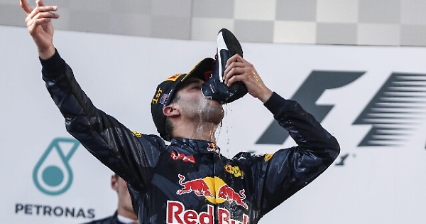 F1: in Malesia vince Ricciardo e beve champagne dalla scarpa