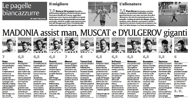 Eccole pagelle biancazzurre dopo la vittoria per 1 a 0 sul Cosenza