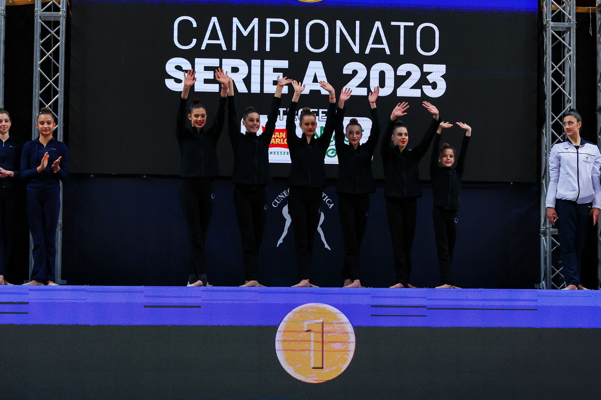 C'è stata la possibilità per gli appassionati di vedere in azione queste straordinarie farfalle azzurre: Elisa Dobrovolska e Ginevra Giacco dell’Armonia d’Abruzzo di Chieti; Virginia Cuttini dell’Eurogymnica di Torino; Michelle Greganti della Ginnastica Opera di Roma; Caterina Maltoni dell’Endas Cervia; Bianca Vignozzi dell’Etruria di Prato e le due etnee della Gymnasium Gravina, Gaia D’Antona e Cristina Ventura.