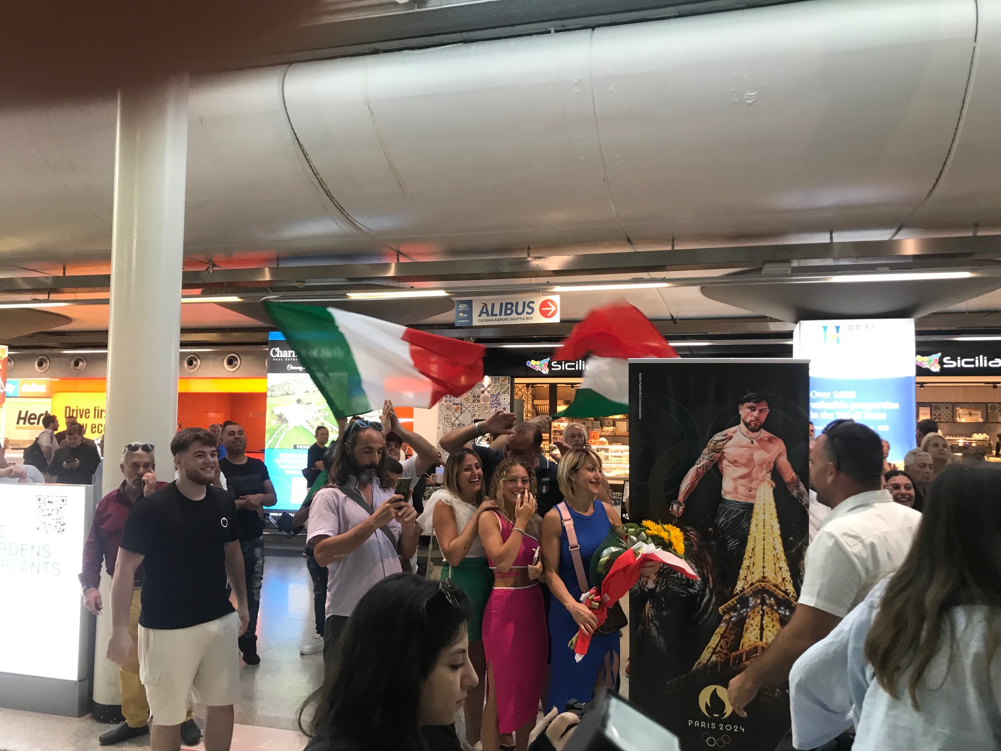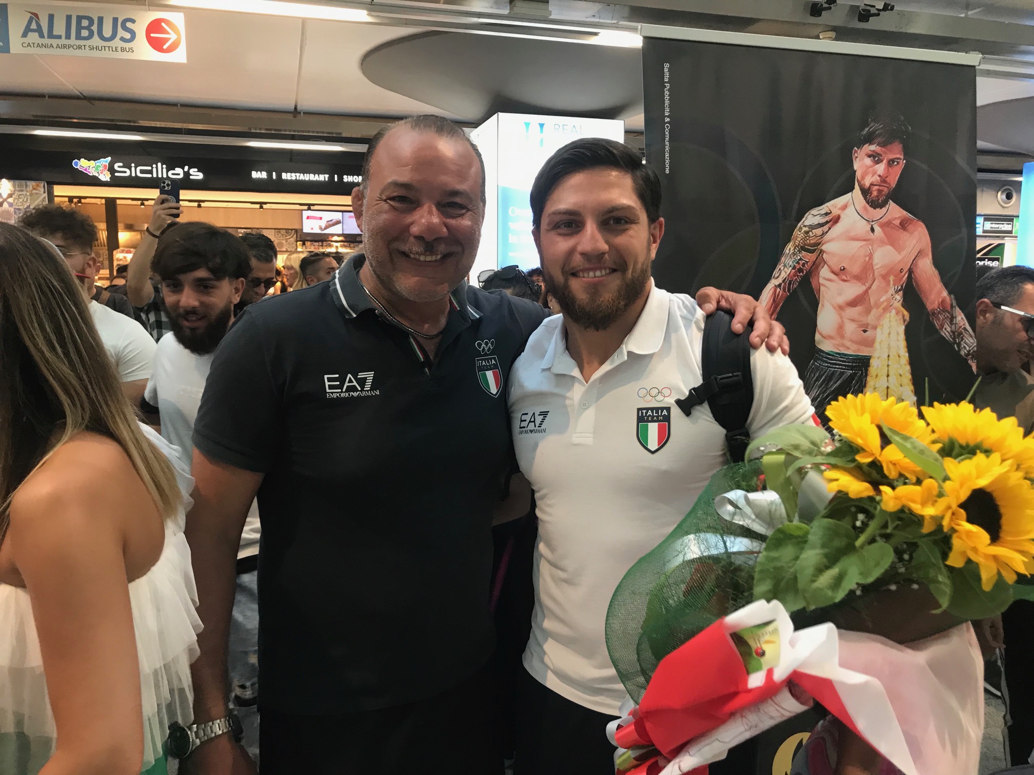 Un tifo da stadio ha accolto lo straordinario campione catanese dopo il bronzo vinto agli Europei in Polonia e la conquistata, primo siciliano al momento, della partecipazione alle Olimpiadi francesi