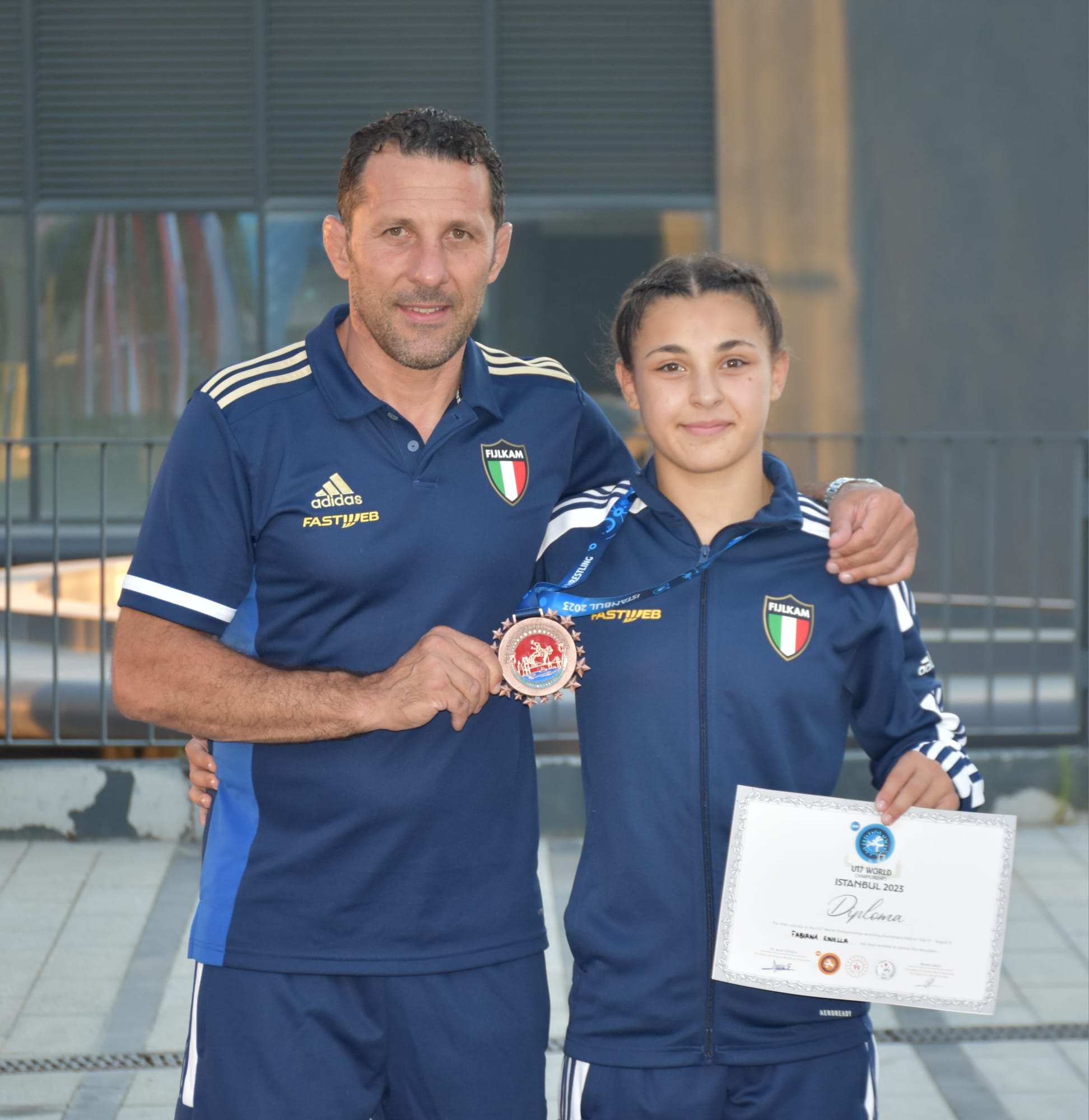 "Sono felice e orgoglioso d fiero di Fabiana – ci dice Salvatore Rinella - perchè è riuscita fare un'altra impresa. Non è facile primeggiare in due competizioni lei lo ha fatto agli Europei e ovvio poi che voleva primeggiare anche ai Mondiali, però sappiamo che la scuola giapponese è più avanti, ma sono orgoglioso perchè oltre alla svizzera ha battuto l'azera Ruzanna Mammadova, campioenssa del mondo in carica. Poi ha perso la semifinale contro la giapponese, atleta più esperta anche se Fabiana è riuscita a tenergli testa. Una sconfitta che l'ha demoralizzata, ma sono riuscito a motivarla e nella finale per il bronzo ha dominato la sfida contro la forte statunitense Karlee Books e ha così conquistato il quinto podio internazionale nella sua giovane carriera: bronzo agli Europei U. 15 nel 2019, argentro agli Europei 2022, bronzo ai Mondiali Under 17 del 2022, oro agli Europei U. 18 2023 e bronzo ai Mondiali Under 17 2023. Siamo fiduciosi per il futuro con la possibilità nel 2024 di vedere sul podio internazionale Fabiana nella nuova categoria Under 20 e centrare la qualificazione per i Giochi di Parigi 2024, anche se ancora è giovane e se fallisce questo obiettivo, può puntare ai Giochi di Los Angeles 2028".