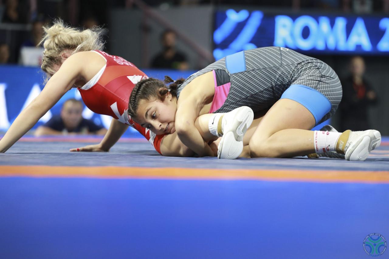 Fabiana Rinella nella sfida contro la statunitense Karlee Books, che valeva il bronzo, si è imposta col punteggio di 7-4, coronando così lo splendido percorso nelle eliminatorie dove era stata fermata soltanto in semifinale dalla giapponese Sakura Onishi che ha poi vinto il titolo iridato. Un grande percorso il suo, che ha visto la nostra giovane campionessa imporsi prima sulla svizzera Anja Epp per superiorità tecnica (12-0) e poi, ai quarti, anche sulla azera Ruzanna Mammadova per 4-1. Poi in semifinale, purtroppo si è dovuta arrendere alla giapponese Sakura Onishi.