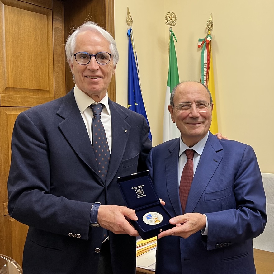 TROFEO CONI 2024 IN SICILIA. Inoltre, Malagò ha annunciato al governatore, come aveva fatto già in precedenza durante la Giunta del Coni Sicilia presieduta da Sergio D'Antoni affiancato da vicepresidente Enzo Falzone l'organizzazione in Sicilia a fine settembre del Trofeo Coni Estivo, dedicato agli atleti Under 14, sottolineando il risultato ottenuto dall'Isola che ha sbaragliato la concorrenza di altre regioni candidate ad ospitare questa importante vetrina dello sport giovanile italiano. E alla fine dell'incontro il presidente Schifani ha donato a Malagò una medaglia raffigurante il gonfalone della Regione Siciliana.