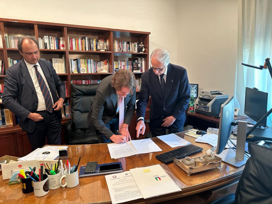 Il numero uno dello sport italiano è stati ricevuto da Renato Schifani presidente della Regione Siciliana, dopo aver annunciato la disputa del Trofeo Coni 2024 nella nostra Isola e sottoscritto due importanti protocolli d'intesa su violenza e abusi sessuali nello sport