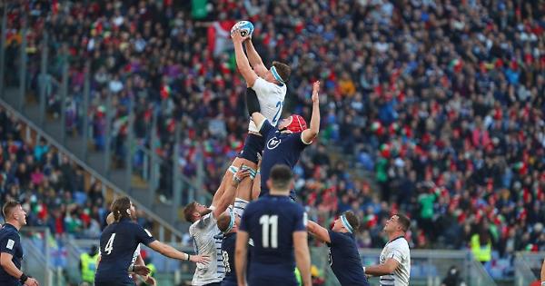 Italy's Giovanni Licata catch the ball during a touch during the Rugby Six Nations match Italy vs Scotland at the Olympic Stadium in Rome, Italy, 22 February 2020 ANSA/MASSIMILIANO CARNABUCI