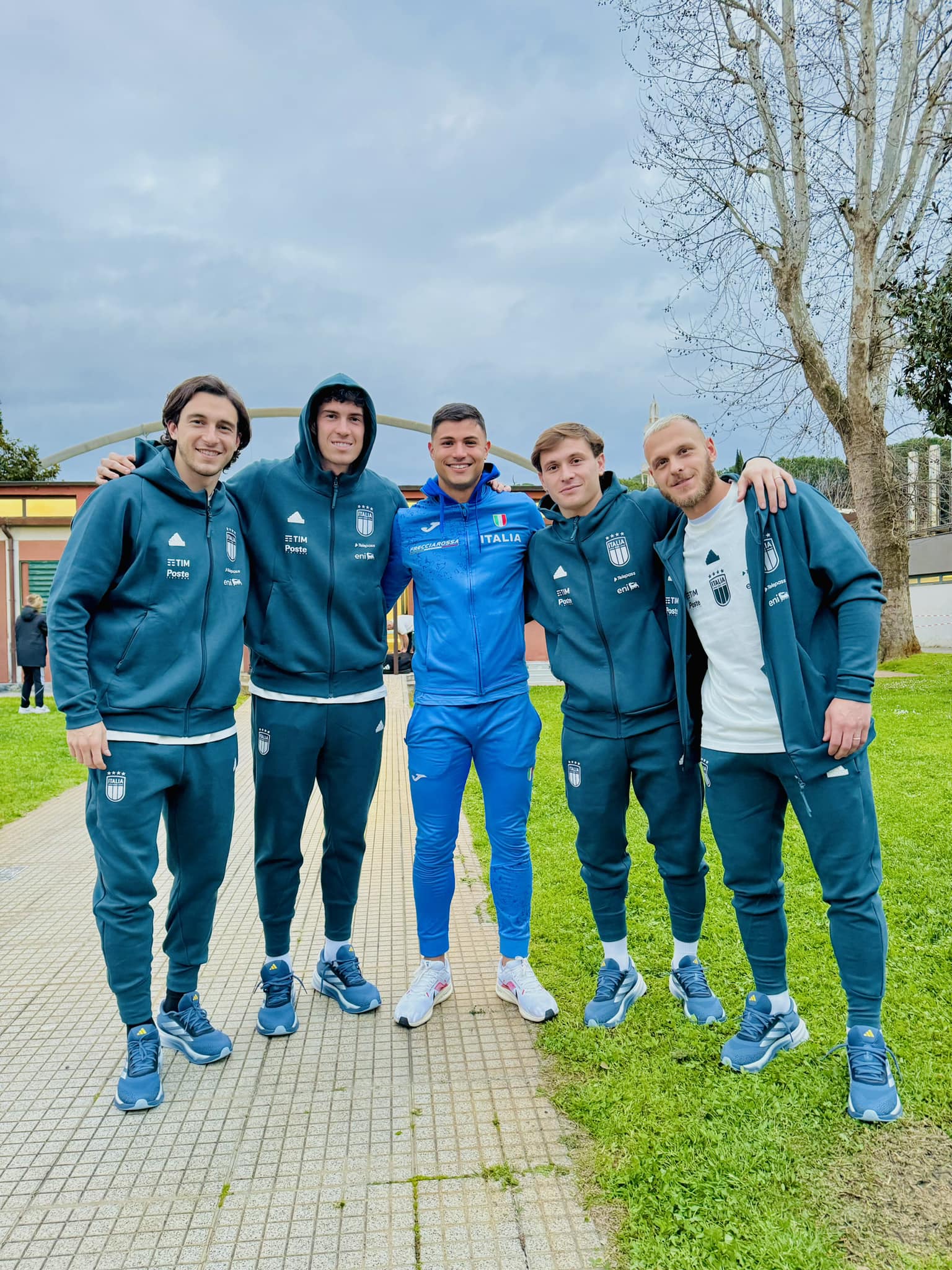 Al centro il siracusano Matteo Melluzzo, tifoso dell'Inter, a Roma ha incontrato quattro nerazzurri in partenza con l'Italia per gli Stati Uniti: Darmian, Bastoni, Barella e Di Marco
