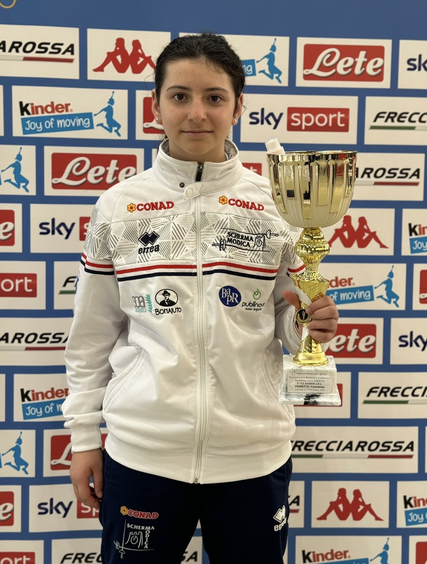 Fioretto f.: 1) Ottavia Iacono (Scherma Modica); 2) Cecilia Raunisi (Scherma Modica); 3) Miriam Distefano Blancato (Club Scherma Siracusa) e Valentina Campanile (Cus Ct). Fioretto m.: Andrea Sanfilippo (Cus Ct); 2) Pierluigi Rapisarda (Cs Sr); 3) Francesco Barcio (Cs Sr) e Giovanni Lo Buglio (Mazara Scherma).