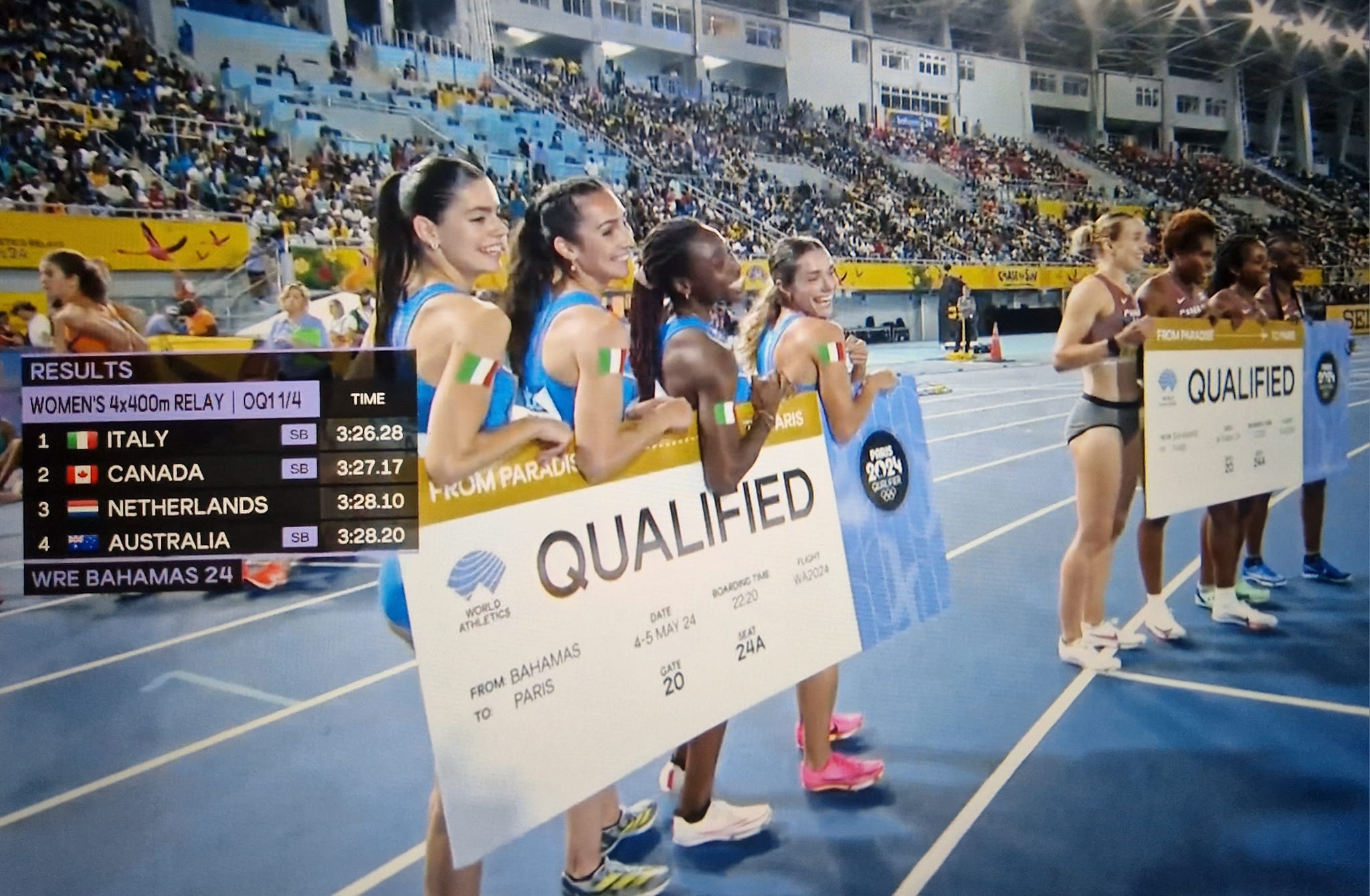 L'Italia che corre veloce non finisce mai di stupire. Ai Mondiali di staffette che nella notte italiana si concluderanno a Nassau nelle Bahamas hanno visto il settore dello sprint azzurro coordinato dal prof. Filippo Di Mulo, catanese, conquistare i primi tre "pass" per i Giochi di Parigi 2024 con i quartetti della 4x100 maschile e le due 4x400 maschili e femminili.