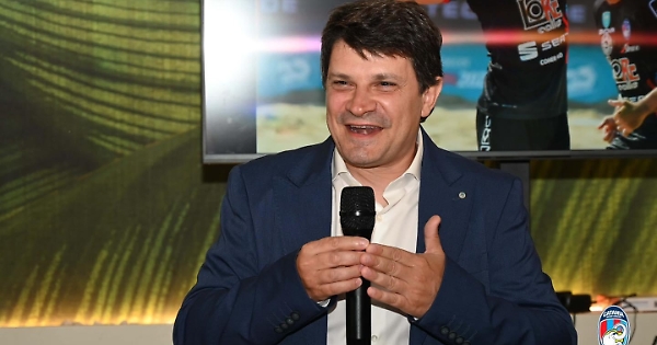 Si avvicina l’esordio ufficiale, in Serie A e in Supercoppa, con la Domusbet.tv Catania Beach Soccer impegnata a Viareggio laddove si era conclusa, con la sconfitta in finale, la passata stagione. È già ora di fare sul serio per il quintetto guidato da Fabricio Santos che affronterà venerdì, alle 16, l’Happy Car Sambenedettese e l’indomani alle 14.45 l’Icierre Lamezia. Tappa viareggina che avrà il suo picco di emozioni con la finale di Supercoppa che opporrà i rossazzurri, vincitori della Coppa Italia 2023, alla Farmaè Viareggio per un remake della finale scudetto giocatasi lo scorso 30 luglio al “Matteo Valenti Beach Stadium”. Apripista di una settimana, ricca di impegni ufficiali, il Media Day tenutosi, per il quarto anno consecutivo, nella cornice sempre più familiare del Ristorante Crudo, a cui va rinnovato il ringraziamento per l’accoglienza ancora una volta riservata e l’omaggio della maglia rossazzurra alla famiglia Napoli, colpita lo scorso febbraio dalla prematura scomparsa di Agatino. Alla presenza di una significativa cornice di giornalisti e operatori della stampa e di istituzioni politiche e federali, tra cui l’Assessore allo Sport del Comune di Catania, Sergio Parisi, e il Delegato della FIGC Catania, Lino Gurrisi, il Club rossazzurro ha evidenziato programmi ed obiettivi della stagione sportiva ormai imminente.
