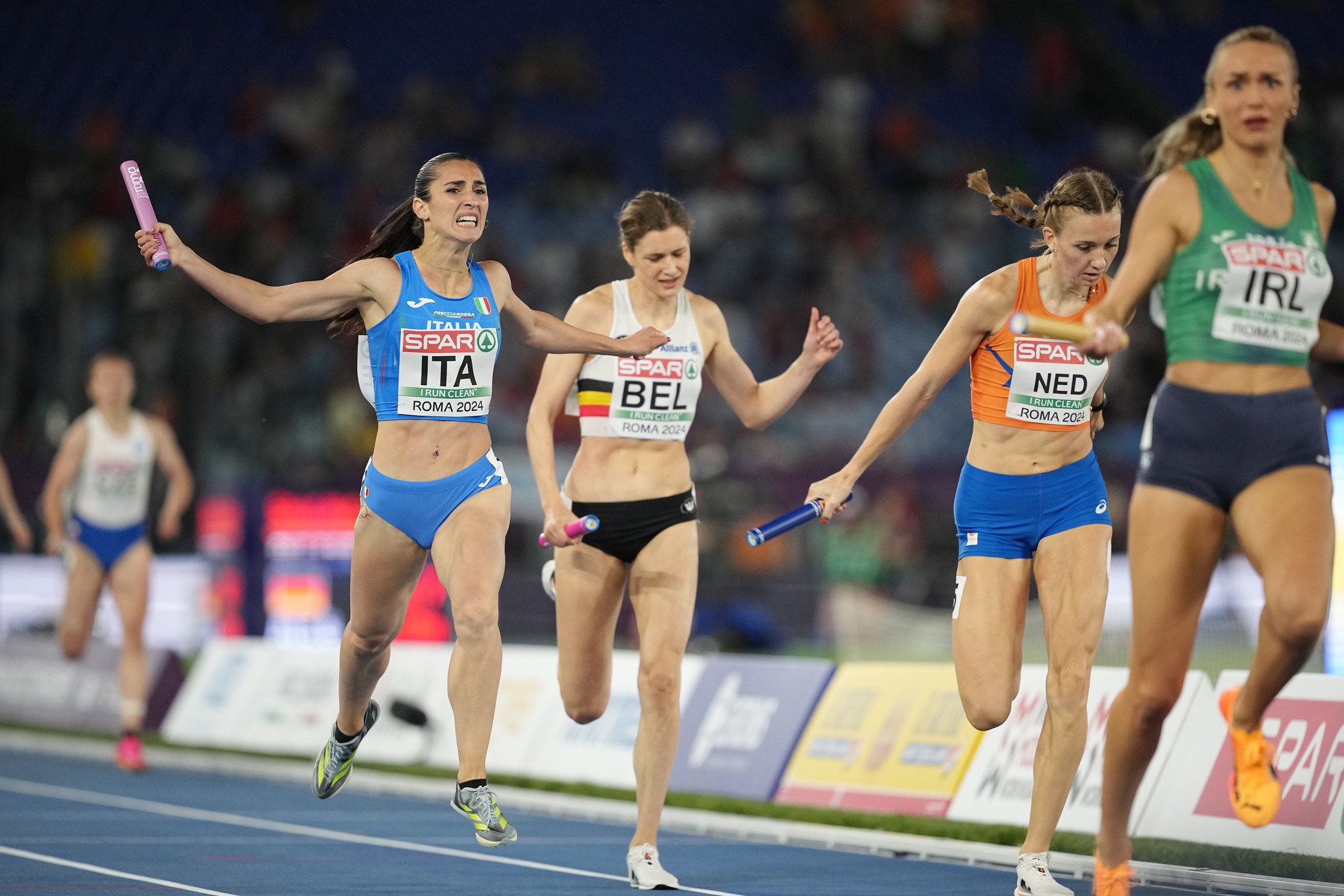 Migliore inizio non ci poteva essere per l’Italia agli Europei di Roma con il pubblico dello Stadio Olimpico in delirio per il bottino di quattro medaglie: la doppietta nella 20 km di marcia, oro all'olimpionica Antonella Palmisano e argento a Valentina Trapletti; il titolo vinto nei 5000 con il nuovo strepitoso record italiano (14'35"29) di Nadia Battocletti, figlia d’arte, papà Giuliano è stato allievo a Palermo di Gaspare Polizzi e l’argento conquistato dal quartetto della 4x400 mista col nuovo record italiano (3’10”69) pass” per i Giochi di Parigi con una straordinaria Alice Mangione in ultima frazione, la nissena che con 50”06 (44”75 per Luca Sito in prima, 51”10 per Anna Polinari in seconda e 44”78 per Edoardo Scotti in terza) è stata capace di tenere lontana l’Olanda che in ultima frazione schierava la numero uno del giro di pista Femke Bol.