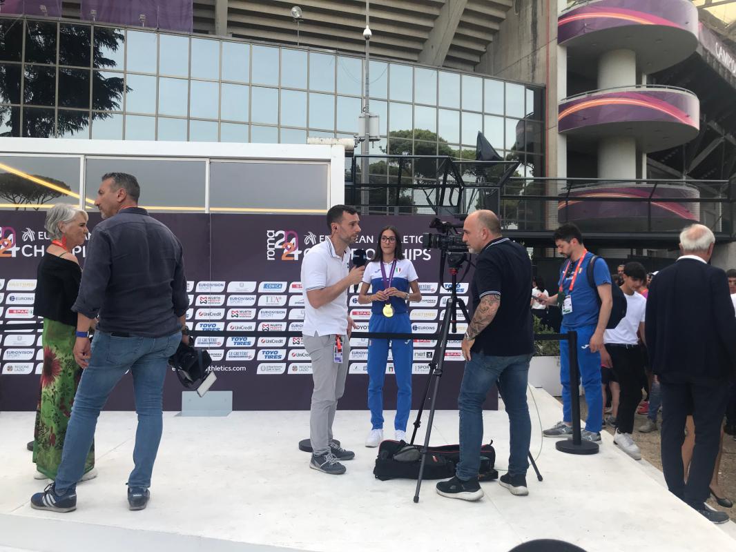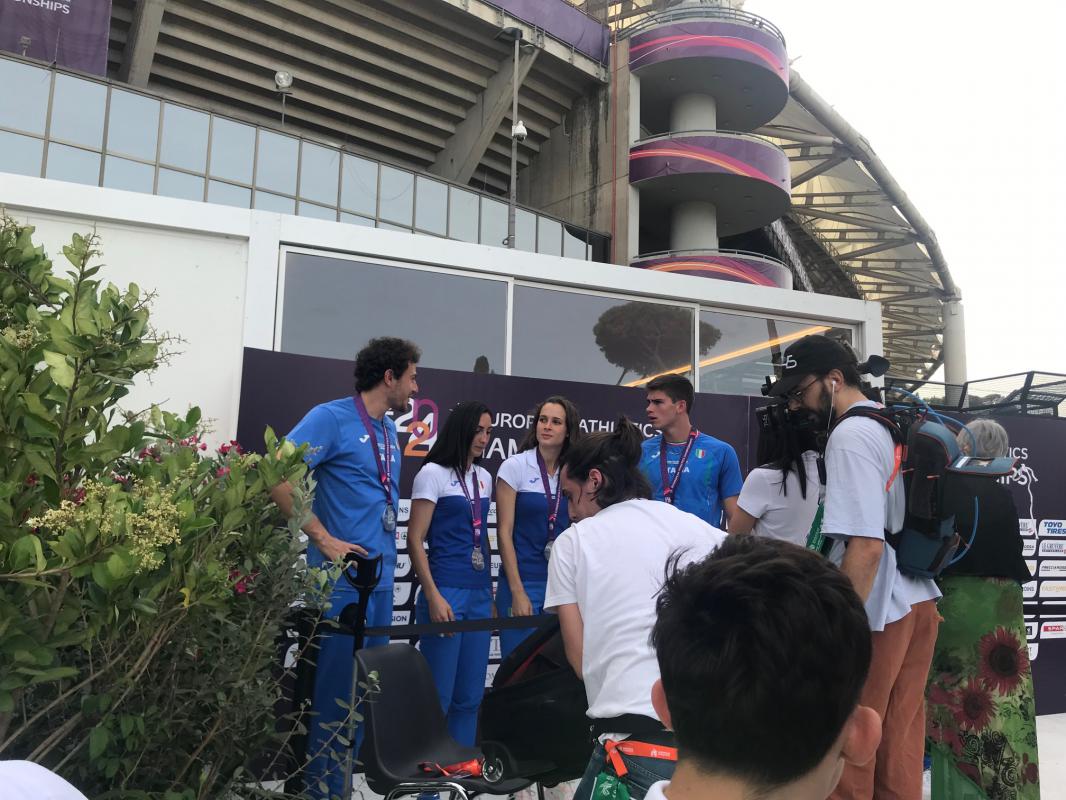 Un bagno di folla per gli azzurri protagonisti della prima giornata degli Europei con la premiazione nella medal plaz dello Stadio Olimpico di Nadia Battocletti campionessa continentale dei 5000 e per il quartetto della 4x400 mista che ha vinto l’argento con il nuovo primato italiano siglato con 3’10”69 da Luca Sito, Anna Polinari, Edoardo Scoti e la nissena Alice Mangione, l’ultima straordinaria frazionista oggi letteralmente travolta dall’abbraccio dei tifosi insieme alla sua allenatrice Marta Oliva.
