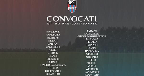 Il Catania, invece, in serata si è ritrovato in Umbria agli ordini del tecnico Mimmo Toscano. La società ha diffuso l'elenco dei 30 convocati. Sono i portieri Adamonis, Bethers, Tirelli, Furlan e Laukzemis (classe 2005, in prova); i difensori Anastasio, Bouah, Curado, Carpani, Castellini, Celli, Di Gennaro, Monaco, Rapisarda, Silvestri, i centrocampisti Di Tacchio, Peralta, Quaini, Sturaro, Tello, Verna, Welbeck, Zammarini, Zanellato; le punte Chiricó, Cianci, Cicerelli, D’Andrea (aggregato), De Luca, Popovic.