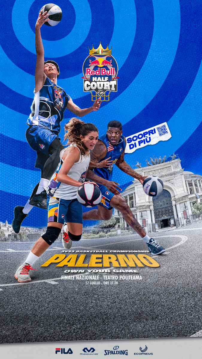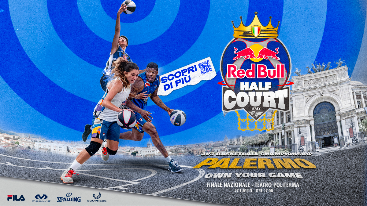 Il grande basket fa tappa in Sicilia grazie alla finale del Red Bull Half Court, in programma il 27 prossimo a Palermo, il più grande torneo al mondo di basket 3 contro 3 che vedrà confrontarsi i migliori streetballers a livello internazionale, dopo i 16 tornei di qualificazione che si sono disputati a Milano, Torino, Genova, Bologna, Venezia, Roma, Firenze, Cagliari, Napoli che hanno assegnato i "pass" per la finalissima in Sicilia per il titolo a 16 squadre maschili e 8 femminili.